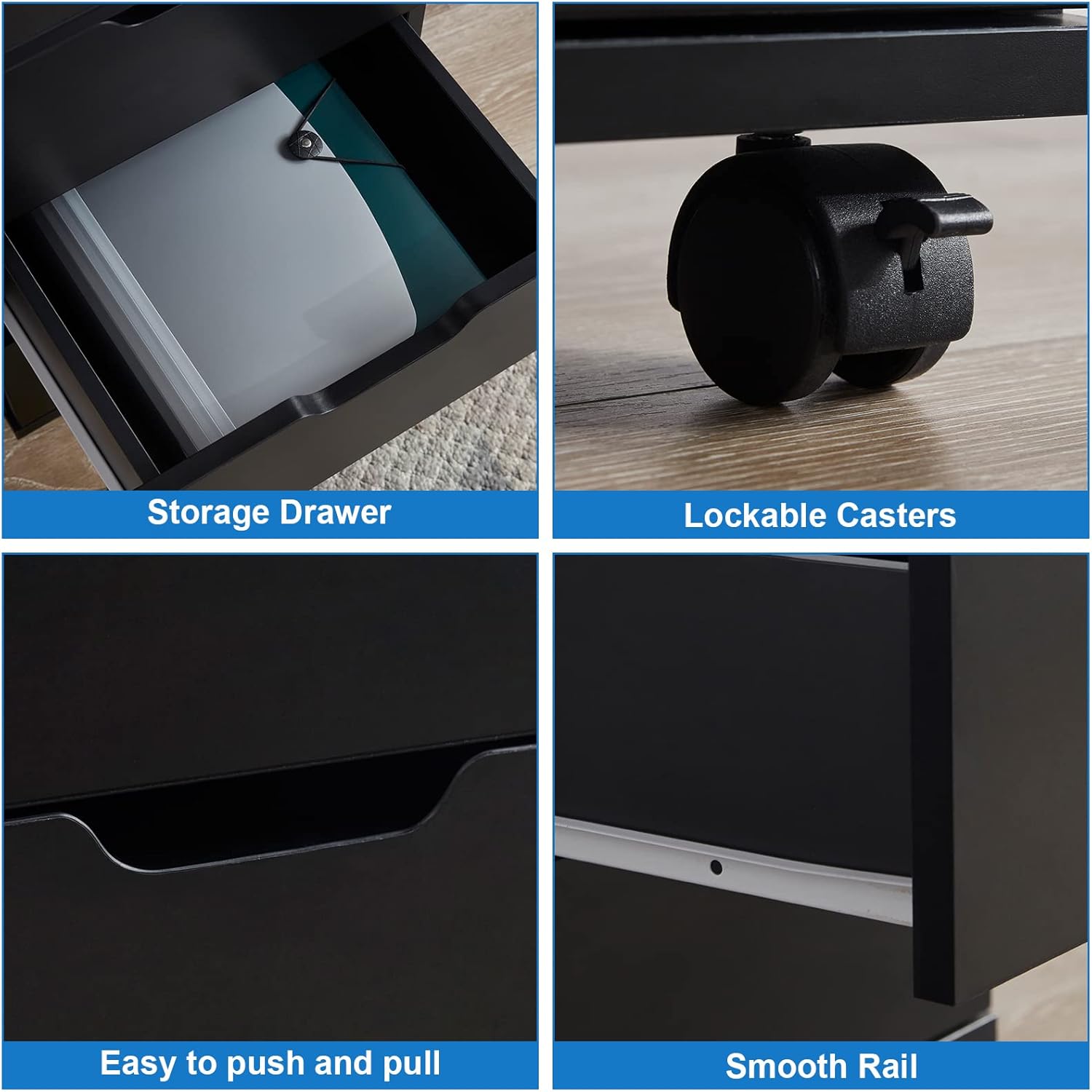 - Four Casters:The rolling file cabinet offers mobile storage for home office,easy to move under desk or wherever you want,2 lockable caster keep your safety.