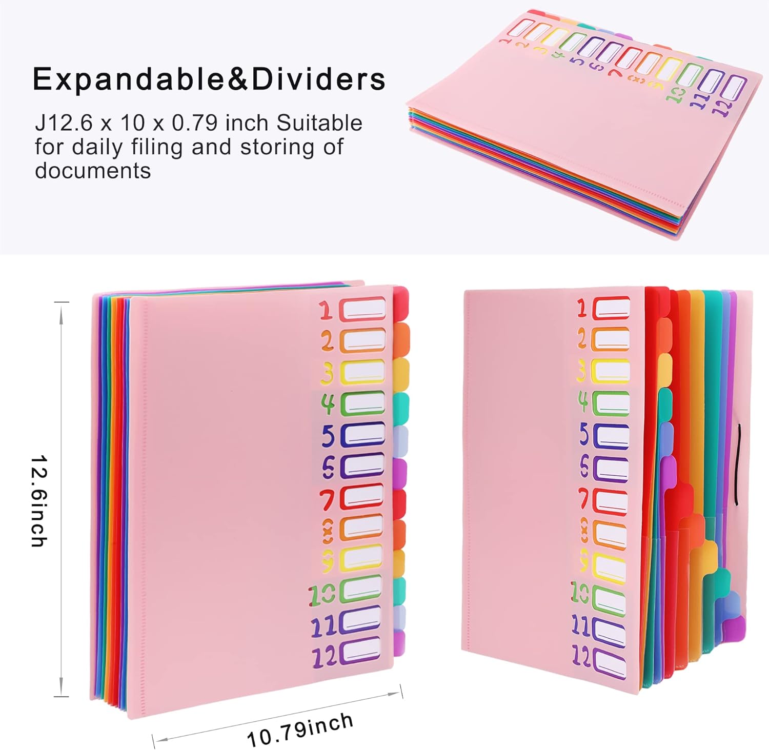 Rainbow Tab Expanding File Folder - 24 Pockets, Durable A4 Letter Size Organizer, Water-Resistant Plastic Dividers, Home/Office/School Document Holder (Pink)