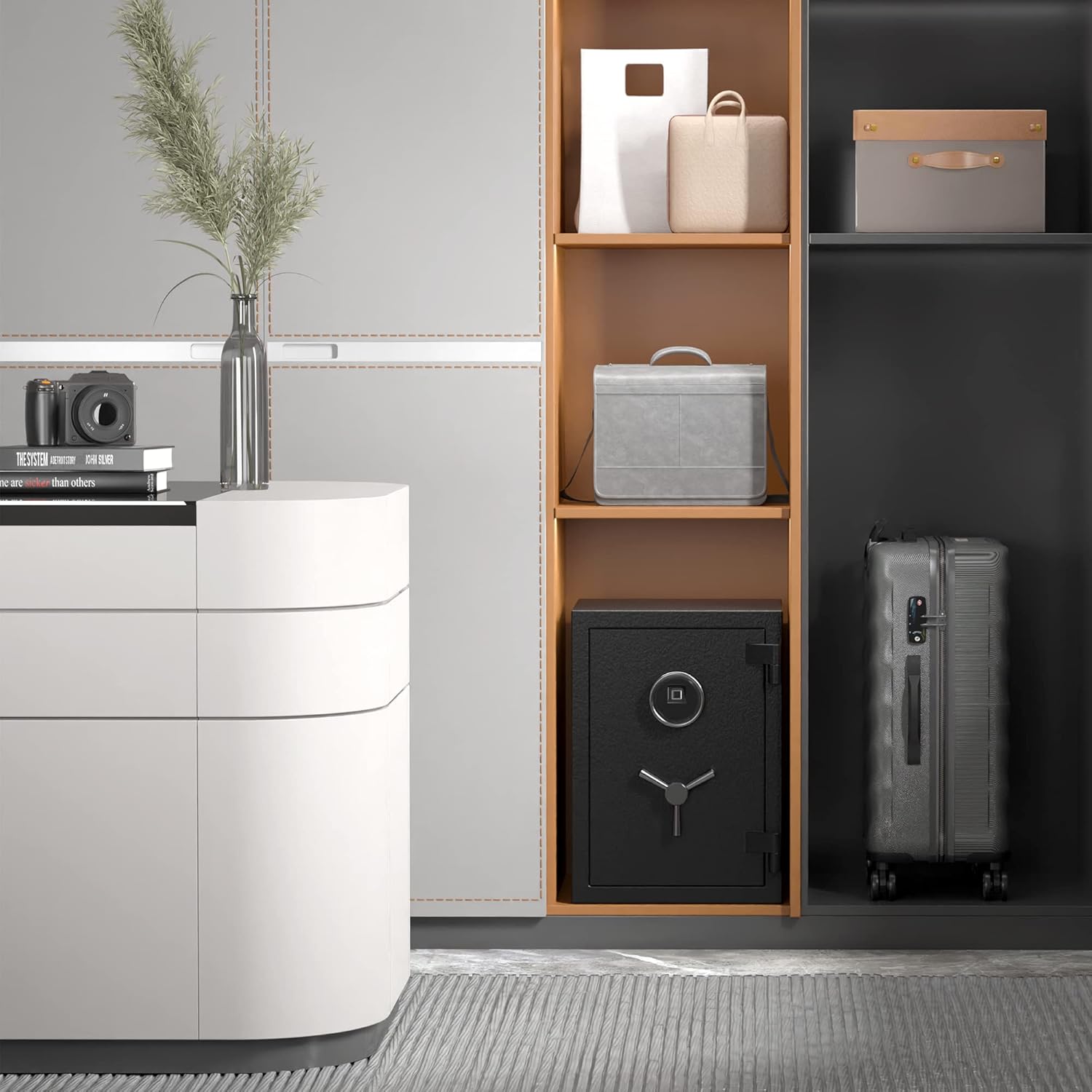 - High Capacity and Flexible Space : A large volume of 1.29 cubic feet with interior size-17.91 Γ12.60 Γ9.84 inches (H*W*D). Each fireproof home safe with a fully adjustable shelf and 8 levels liftable height. It can be moved up and down to create layered space to meet the storage needs of different product sizes