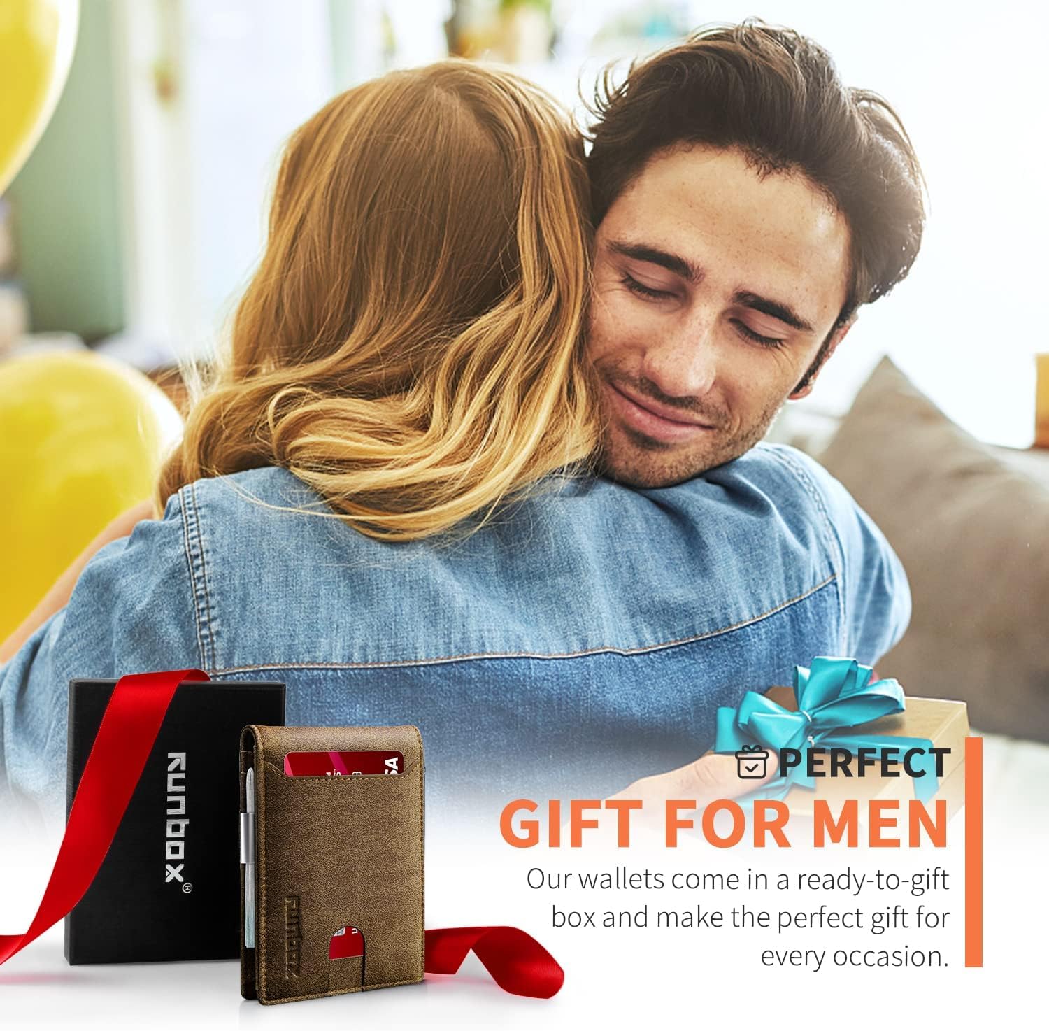 RUNBOX Slim Wallets for Men - Leather Money Clip Mens Wallet - RFID Blocking Front Pocket Bifold Wallet - Minimalist Credit Card Holder with Gift Box