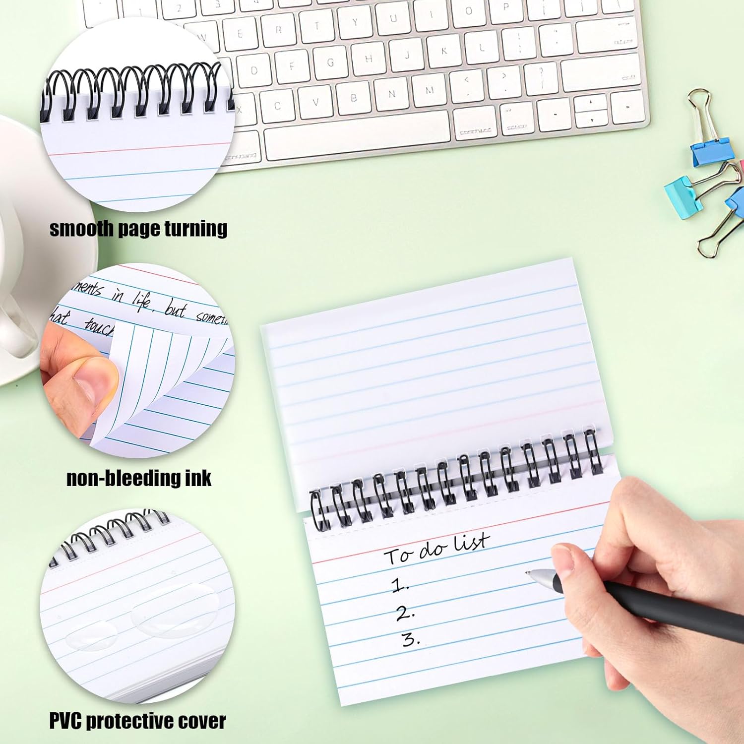 - Protective Cover - The index cards come with double-sided frosted PVC protective covers, both sides of the notepad are protected, and the PVC covers of the index cards play a role of waterproof and dustproof. And the cover will give the notepad a strong support when writing offhand.