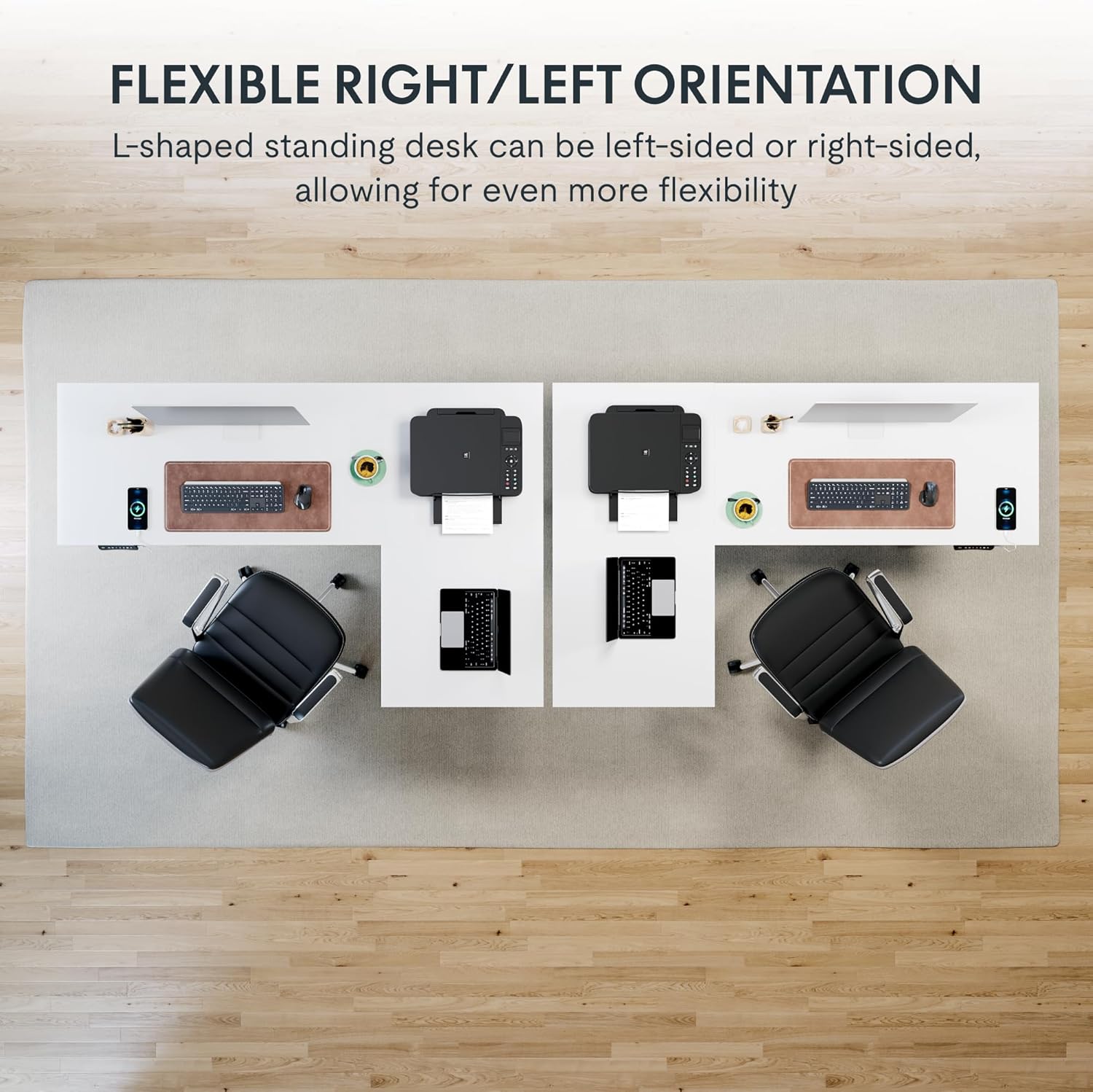 SANODESK 71-Inch Large Dual Motor L-Shaped Electric Height Adjustable Standing Desk - Reversible Panel - White Top/White Frame - Ideal for Gaming, Home Office or Computer Workstation