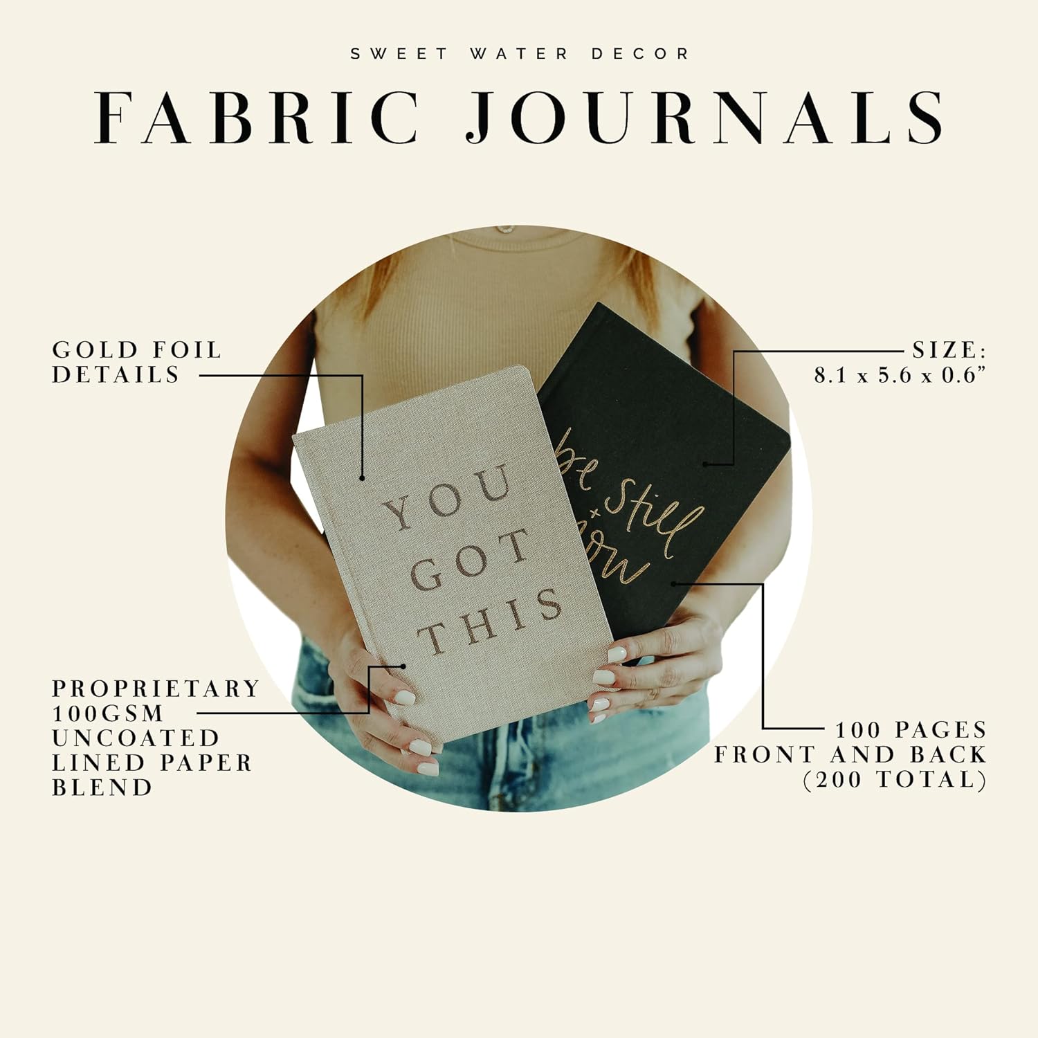 Sweet Water Decor Cute Motivational Lined Composition Notebook for Women, 100 Ruled Pages for Writing, Diary with Fabric Inspirational Cover (You Got This)
