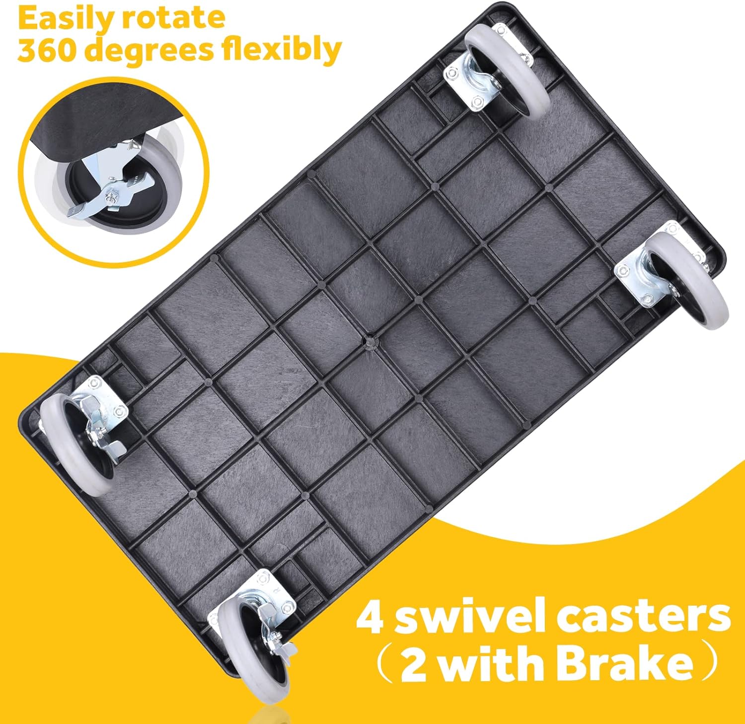 - ๐ EASY MANEUVER & LOCKING BRAKES: Equipped with four swivel casters, two of which are lockable, this cart ensures effortless navigation even in confined spaces. The 5-inch wheels are crafted from industrial-strength polypropylene for smoothness and durability. Moreover, an exterior wrap of Thermo-Plastic-Rubber not only absorbs shock and reduces noise but also prevents floor scratches and carpet snags. Experience 360-degree flexibility and labor-saving transport.