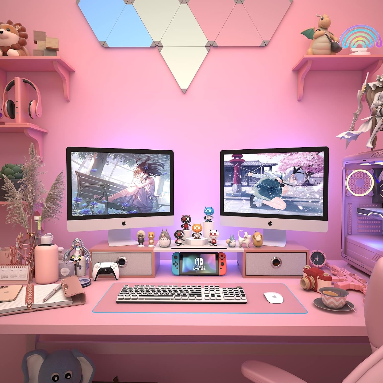 WESTREE Dual Monitor Stand Riser with Two Drawers, Extra Large Storage Monitor Stand for 2 Monitors, Desktop Oraganizer Stand for Computer,Laptop,Screen,Printer,TV