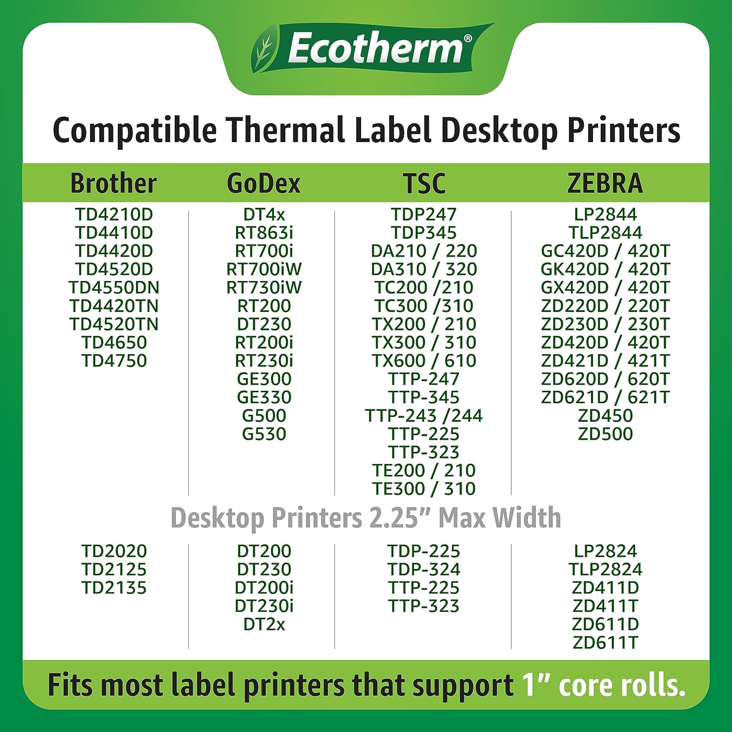 2.25" x .5" Thermal Labels | 4 Rolls | 13840 Labels | fits Zebra, Munbyn, Rollo, Godex, Arkscan, iDPRT, Offnova Thermal Label Printers and More | Blank White Adhesive Stickers by Ecotherm