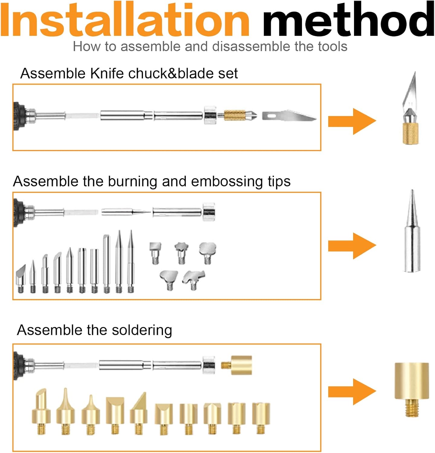 - Material: Carving/embossing/soldering tips are made of high quality copper and stainless steel, with unique design and exquisite workmanship, Rust-proof,durable for use