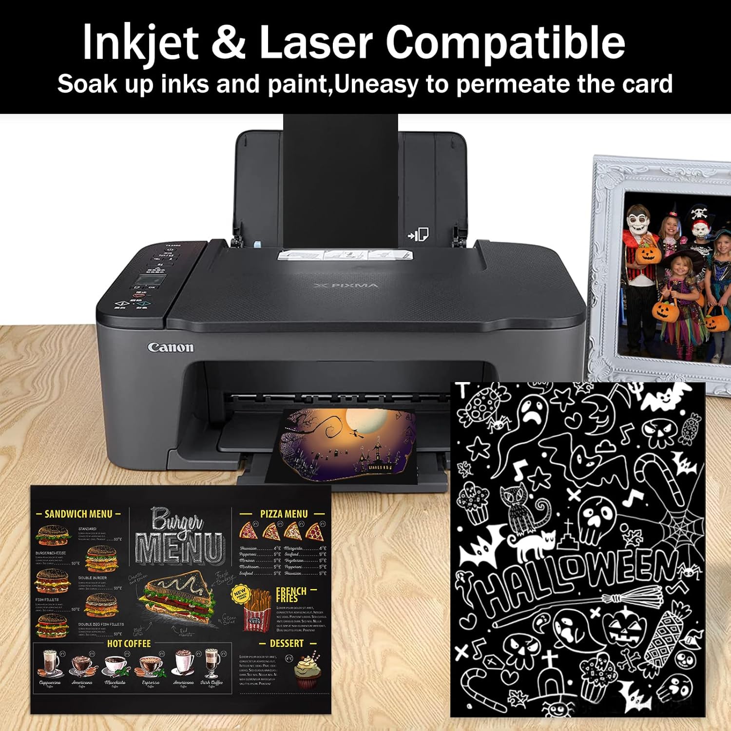 - Printer Friendly: Sturdy and versatile, our double sided black stock paper is compatible with most types of inkjet, laser printers and photocopy machines; Please check the maximum thickness specification of your printer before printing