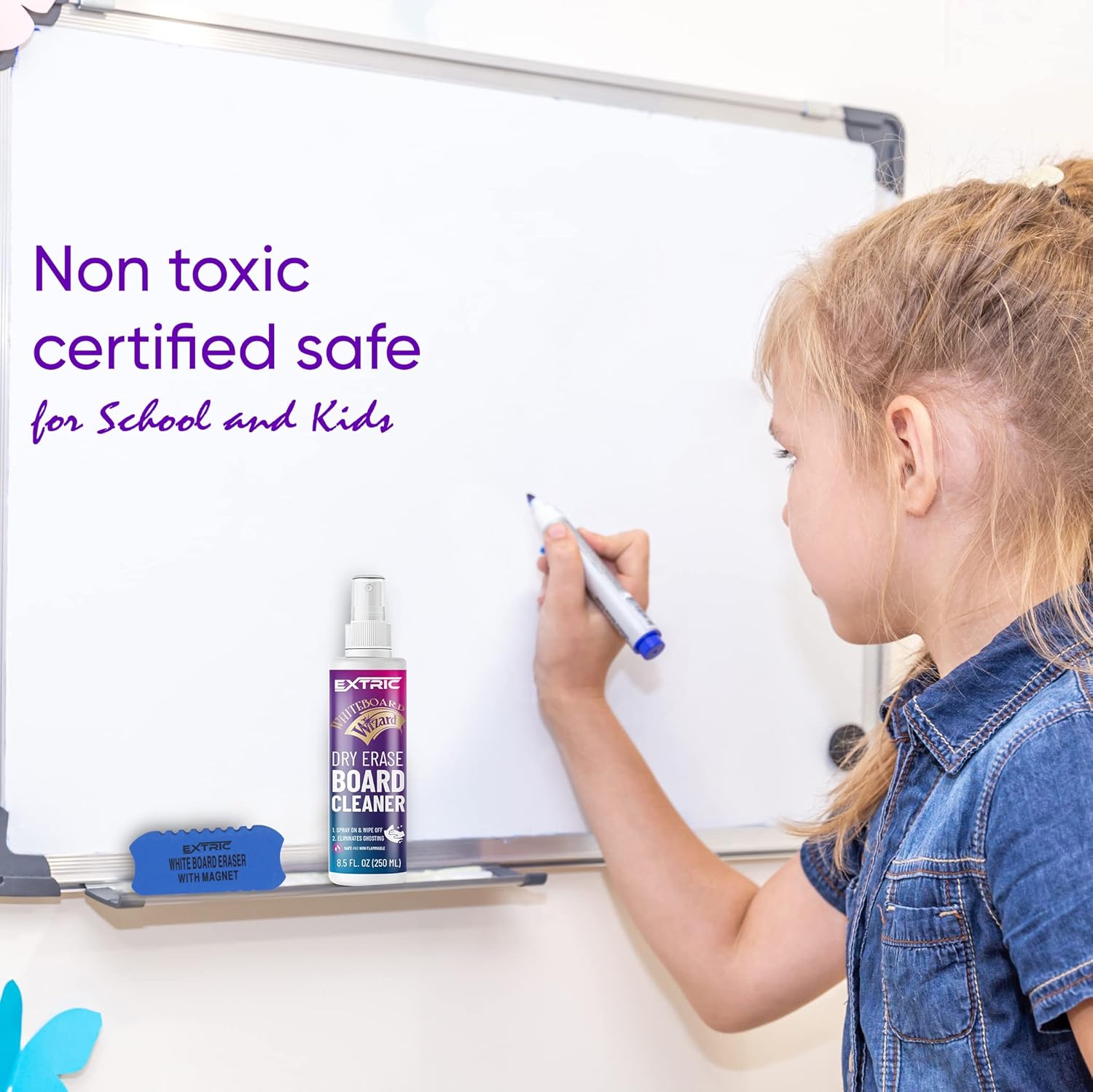 - Non Toxic and Safe Dry Erase Spray: Our Whiteboard Cleaner is AP-certified non-toxic and conforms to ASTM D4263, It is safe to be used in a classroom and home.