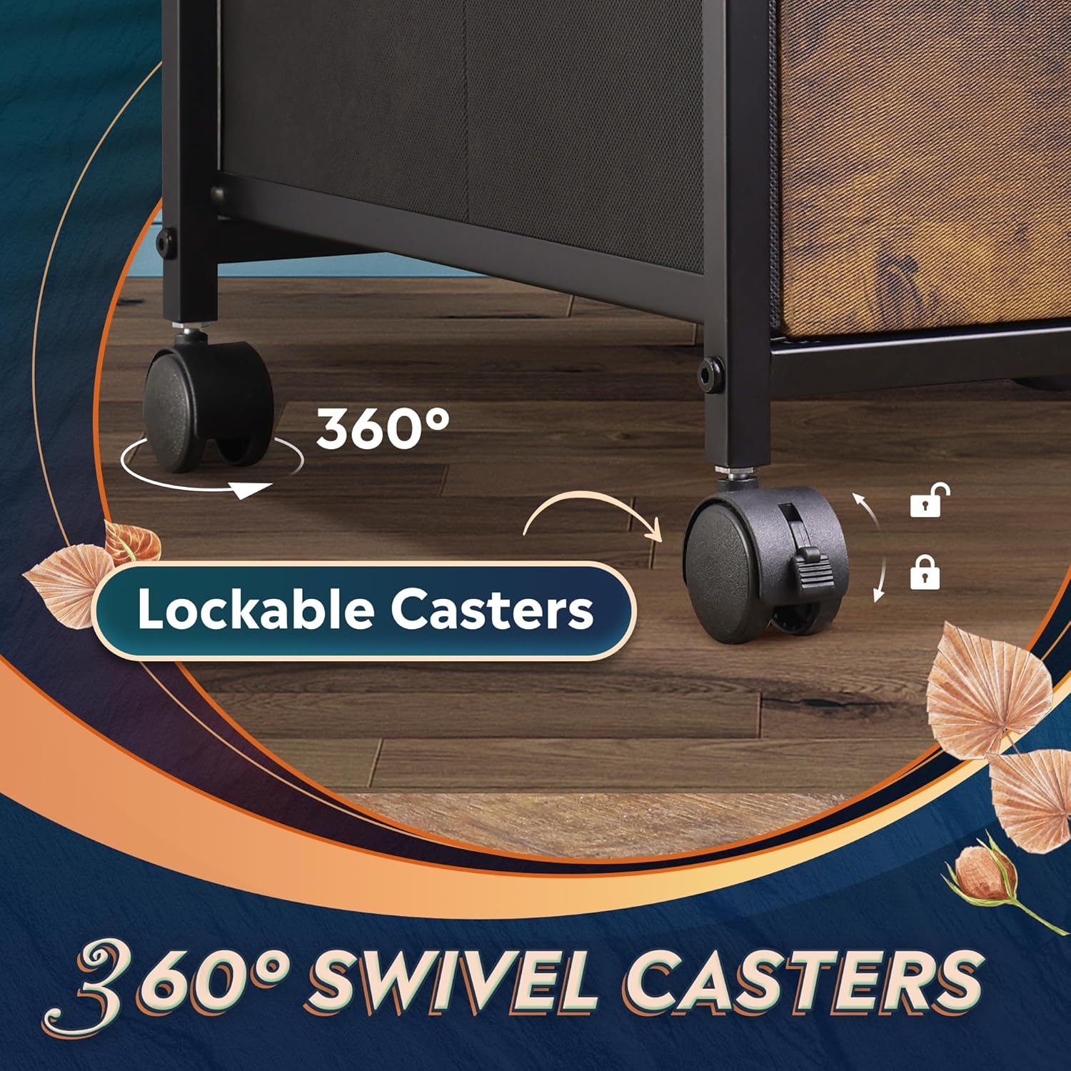 - Easy to Move: Rolling on 4 wheels, this mobile file cabinet can fix or move around your home office freely. Built-in brakes on front 2 casters to keep it in position and add stability. Unique fabric drawer design makes it only weigh 22 lbs. and light to move.