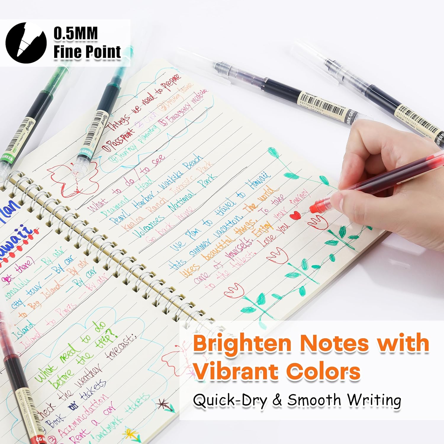 - EXTRA-LARGE INK VOLUME : RIANCY colored Rolling ball fine point smooth writing pens support up to 1500m writing distance! and also the transparent pen barrel allows you to know the ink supply, liquid ink rollerball 0.5,ballpoint pens assorted colors, pens fine point smooth writing pens, gel pens