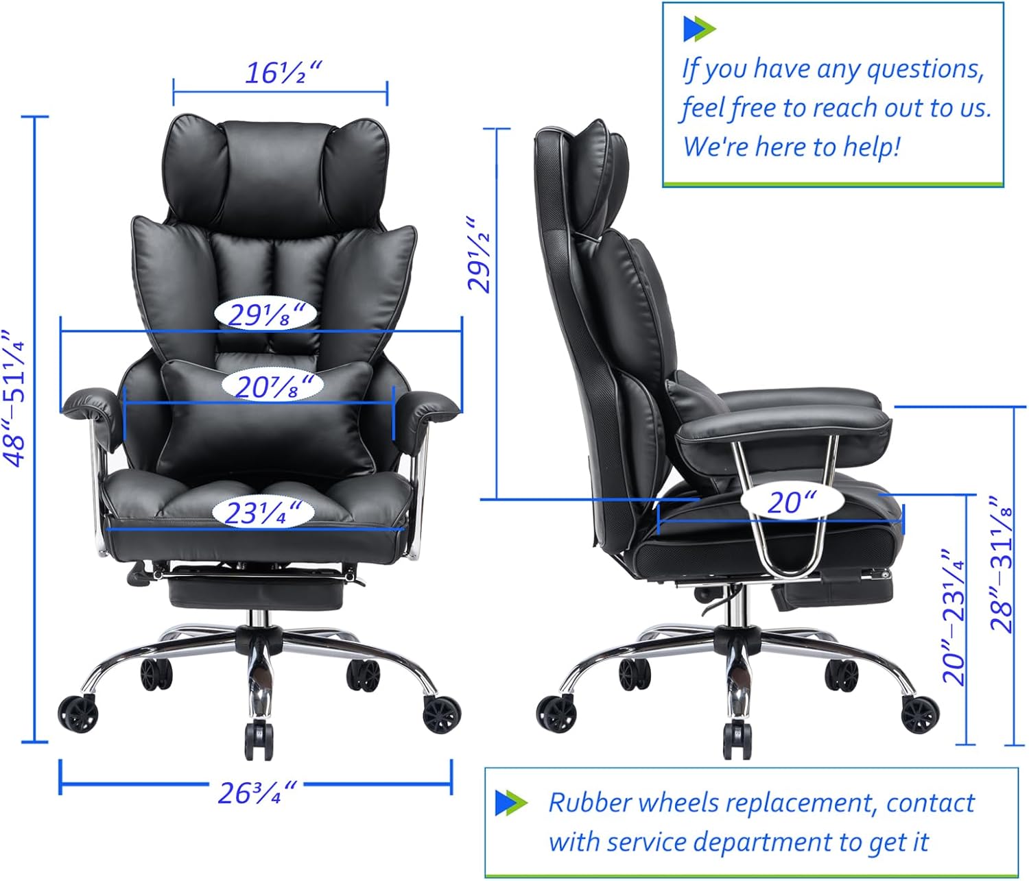 - Work Chair Worry-free Purchase—Customer satisfaction about the modern office chair is our top priority! Rest assured that our office chairs are accompanied by all the necessary hardware and tools for easy installation, The executive desk chair can be easily installed and finished in about 15-30 minutes. If you have any questions about the computer office chair, please don't hesitate to reach out to us. We are committed to providing excellent assistance and support.