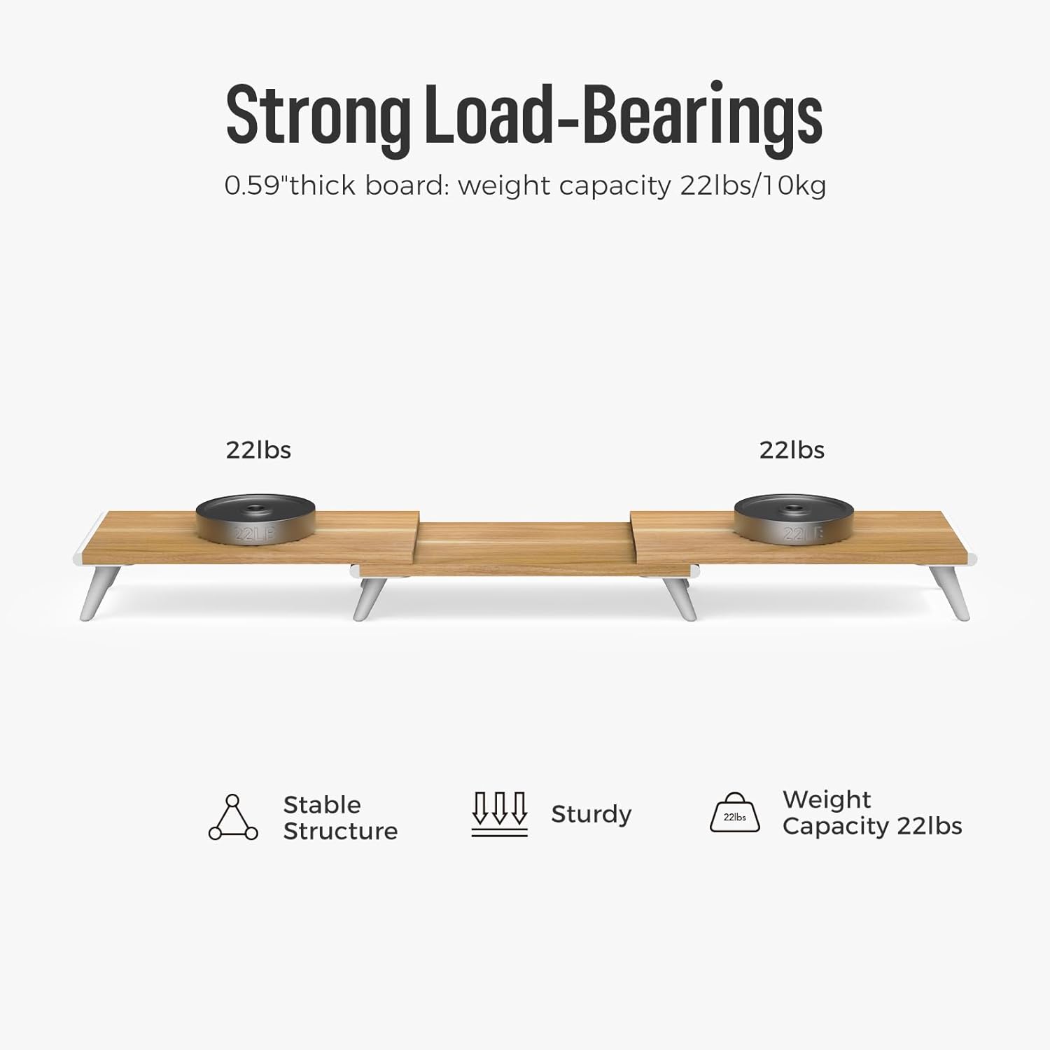 loukin Dual Monitor Stand Riser for Desk, 43.6"*8.2"*3.2" Large Computer Stand for 2 Monitors, Laptop, Printer, Length and Angle Adjustable Computer Shelf, Home Office,Max 43.6" Length Natural
