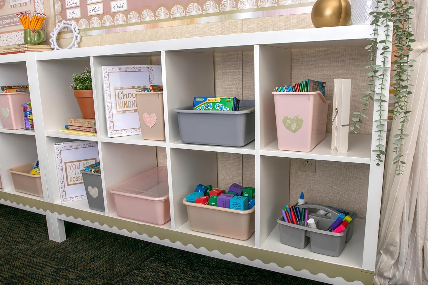 Teacher Created Resources Gray Portable Plastic Storage Caddy 6-Pack for Classrooms, Kids Room, and Office Organization, 3 Compartments