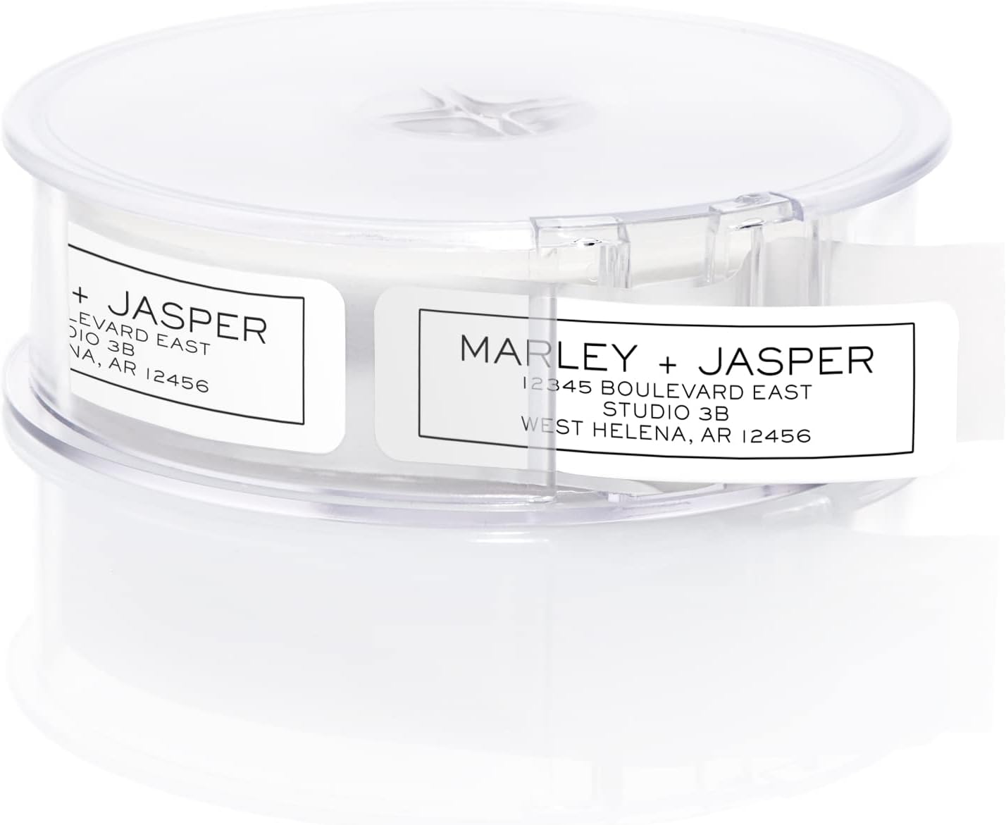 Simple Modern Outline Rolled Address Labels/Roll of 250 Square Box Personalized Address Labels/Designer Return Address Stickers in Elegant Plastic Dispenser
