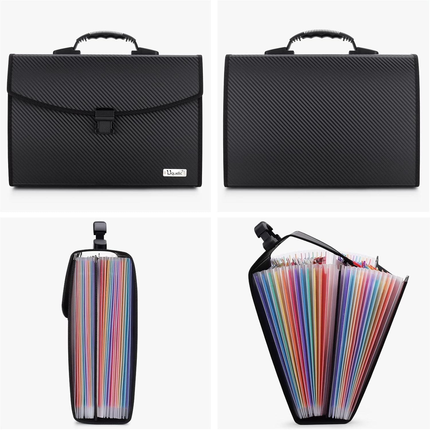 Uquelic 26 Pockets Expanding File Folder - Accordion Savor Document Organizer Folio Upgraded Durable Buckle, Base with Ergonomic Portable Handle/Large Legal Size Expandable File Organizer