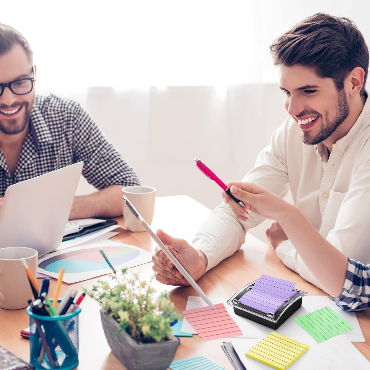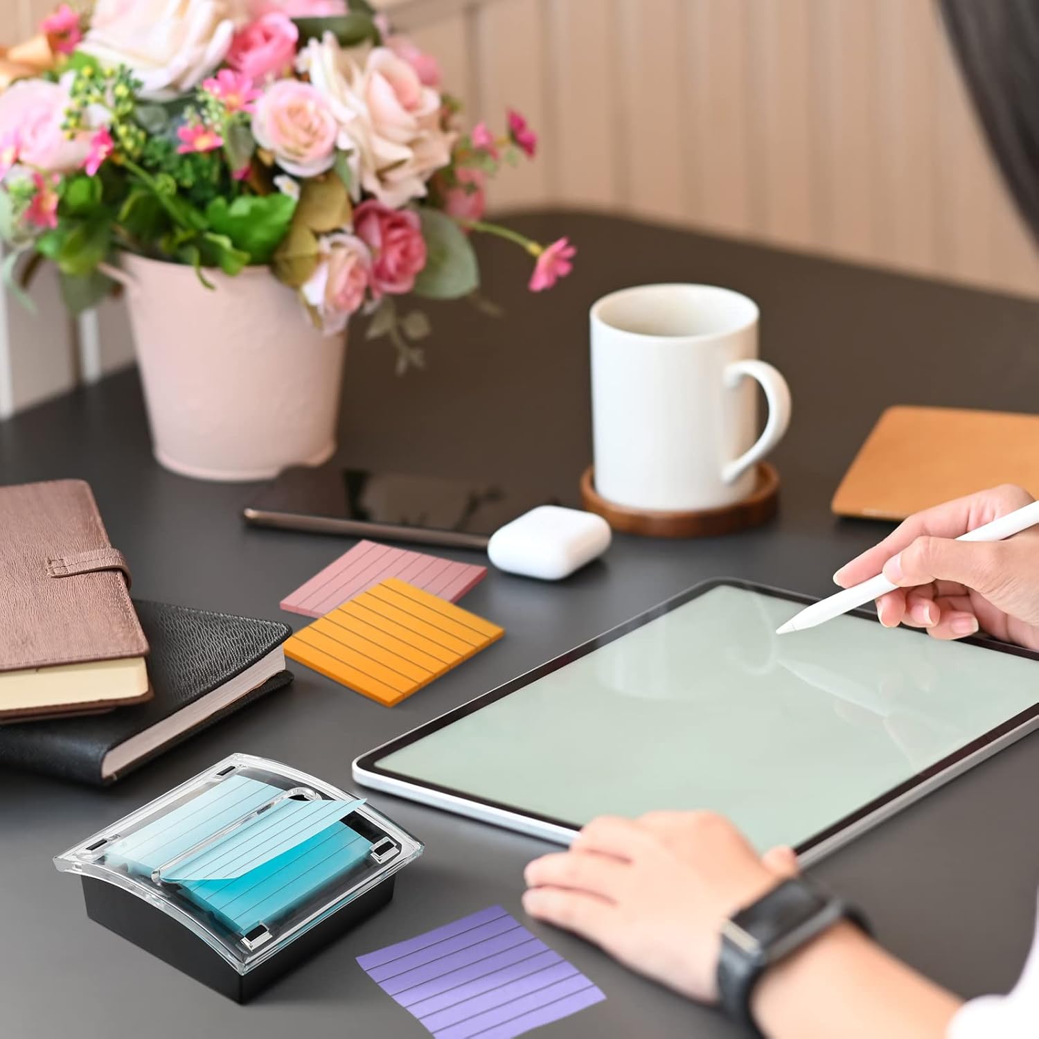 - Improve Your Work Efficiency: when you need to jot down your thoughts and to do lists, this lined sticky note and dispenser set can help you find the notepad much more quickly, reducing the stress and confusion of frantically looking for the notepad, and to some extent, improving your work efficiency