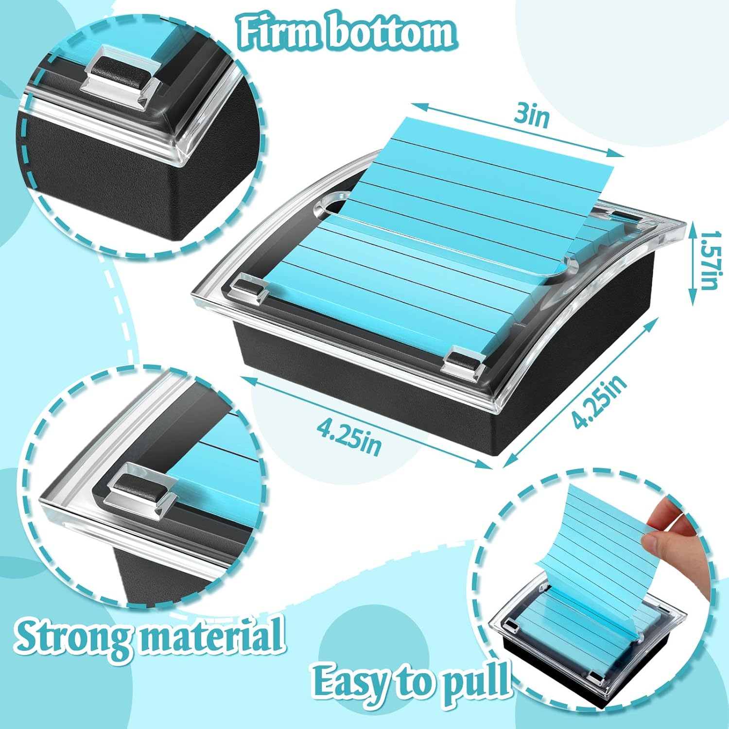 - Dependable Material: the notes dispenser for desk is made of quality acrylic that won't shatter easily and will last a long time; The surface is smooth, so you won't have to worry about it hurting your hands; These sticky notes are made of reliable quality paper material, with smooth writing surface, not easy to tear and break, you can use them with confidence for a long time
