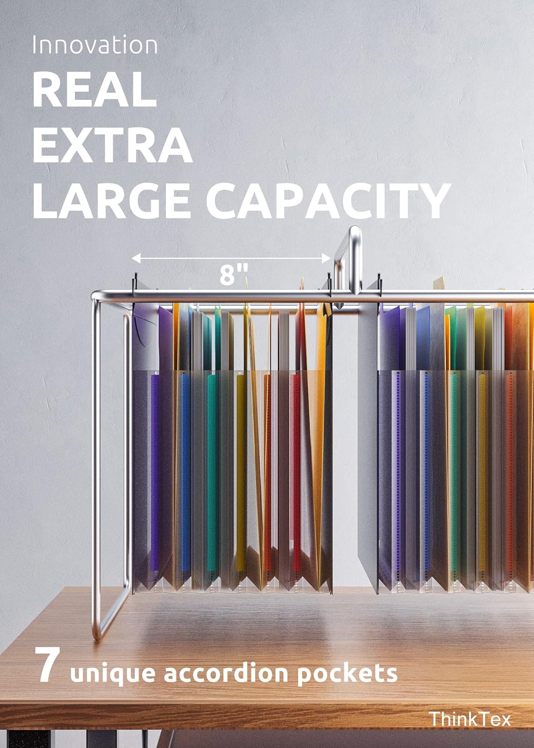 ThinkTex Plastic Expanding Hanging File Folders, 7 Innovative 1.2" Accordion Pockets, Large Capacity, Multi-Color Tabs, Letter Size for Filing Cabinet - 1 Pack