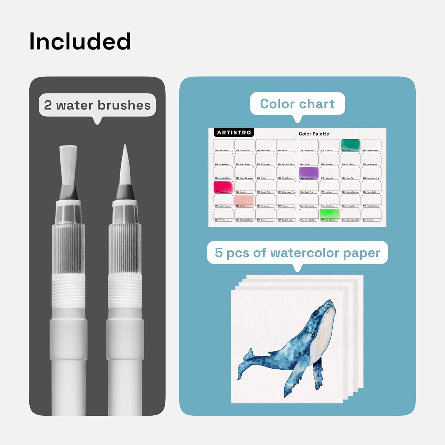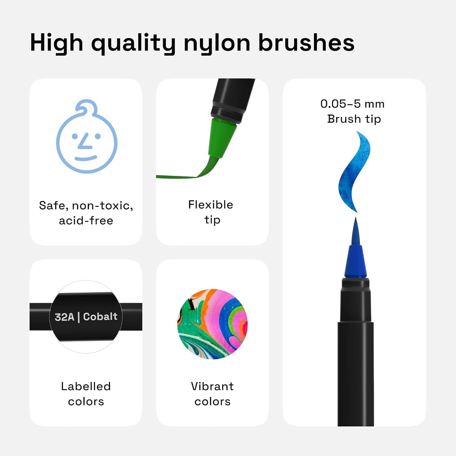 - NON-TOXIC & ACID-FREE: Each watercolor pen meets all USA and EU safety requirements and comes with xylene-free opaque ink. Plus, the Artistro paint brush pens are environmentally-friendly and safe for kids too.