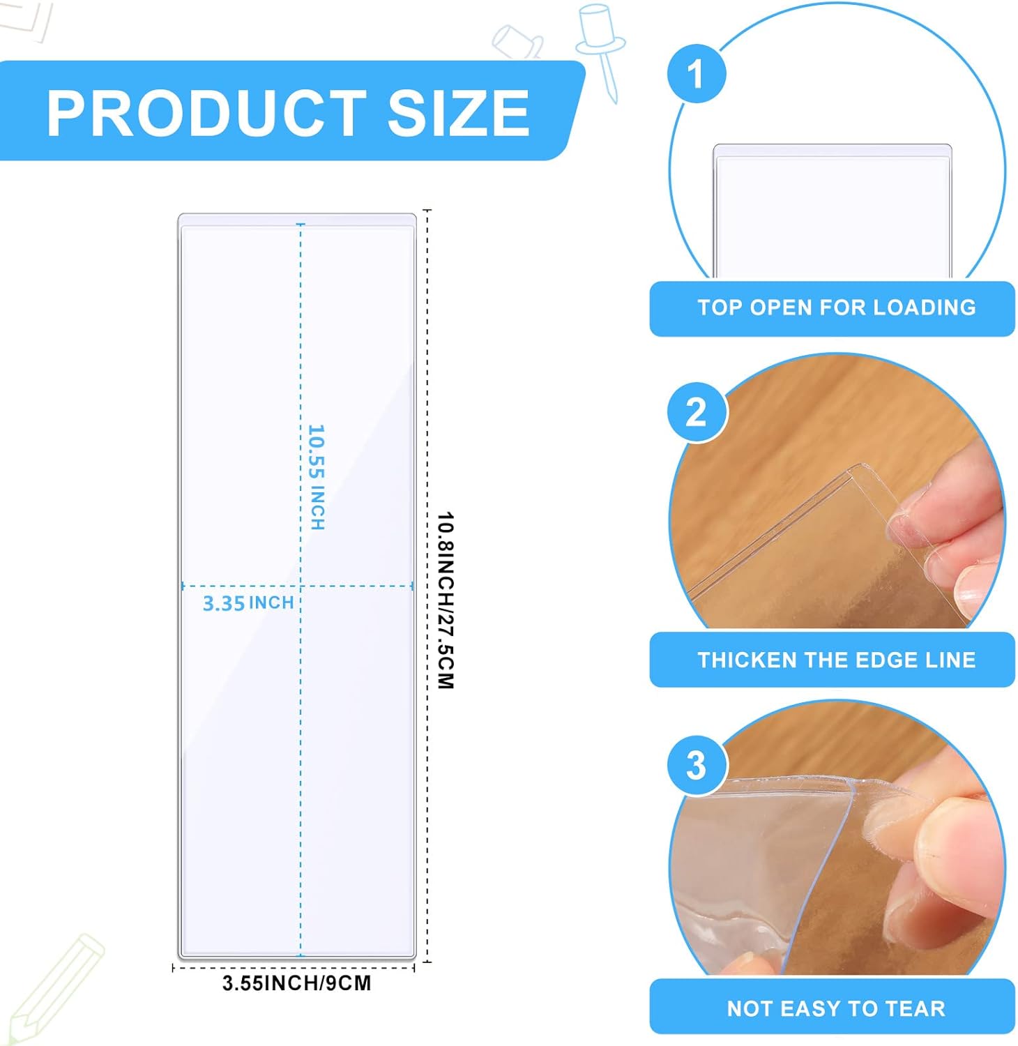 - Applicable Cards: the outer size of clear adhesive pockets is 27.5 x 9 cm/ 10.8 x 3.55 inches, fits cards up to 10.55 x 3.35 inches; You will recieve 30 self-adhesive card holder for labels, waterproof, dustproof, and fingerprint-resistant