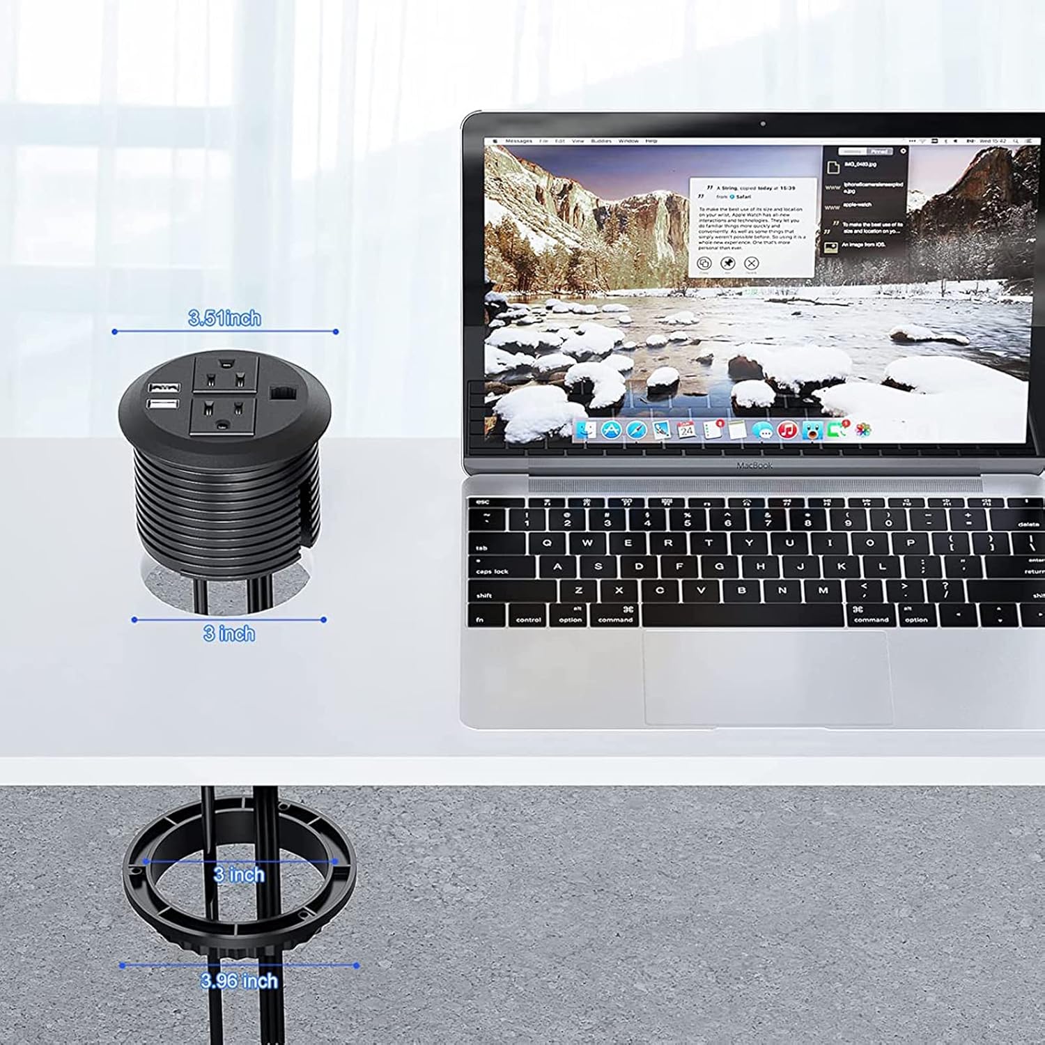 - 【Desktop power grommet configuration】2 AC outlets(125V/12A/60Hz/1500W) & 2 USB A ports(5V/2A) & 1 Network RJ45 Port(for Cat6/1000Mbps), 10Ft heavy duty extension cord and network cable.