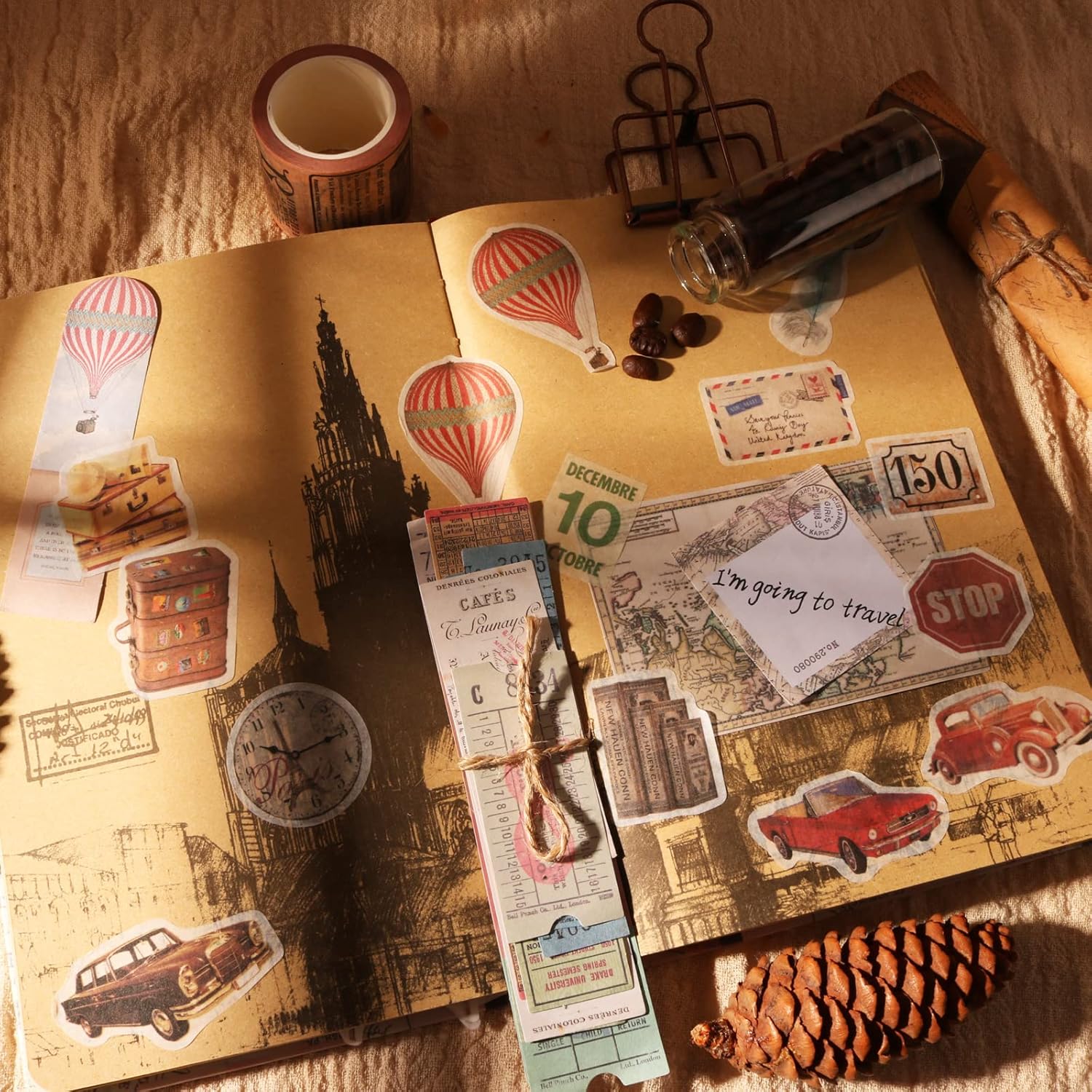 - 【World Travel Theme】 200 Pieces world travel theme assorted paper & stickers, including old cars and electronic devices, old world maps, receipts, tickets, buildings from the past etc. Perfect for junk journals, scrapbooking, collages, or travel-themed art projects!