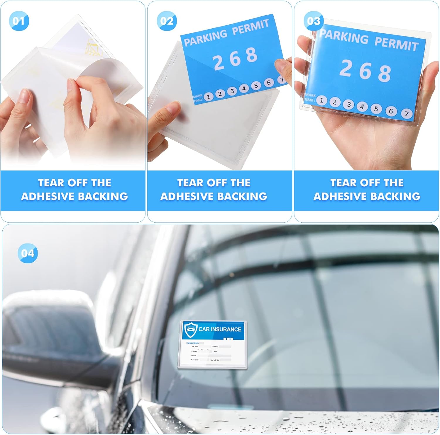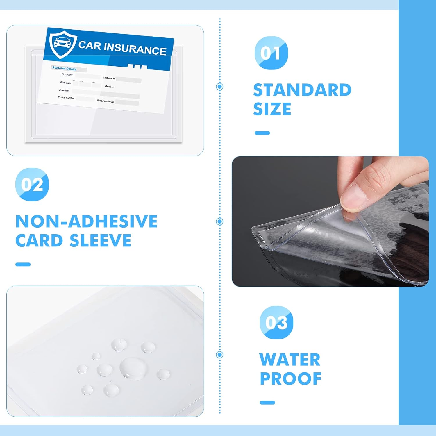 - Applicable Cards: the outer size of clear adhesive pockets is 4.4 x 3.5 inches, fits cards up to 4 x 3 inches; You will recieve 30 self-adhesive card holder for labels, waterproof, dustproof, and fingerprint-resistant
