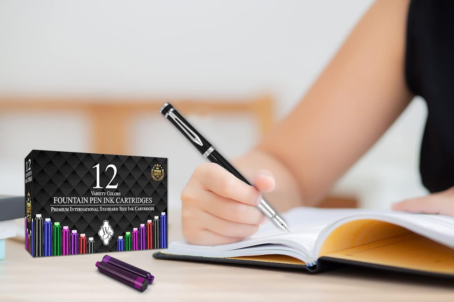 - ✅Big Value Multicolor Pack: The 12-pack features 12 ASSORTED international standard size ink cartridges to fit almost all fountain pens on the market.
