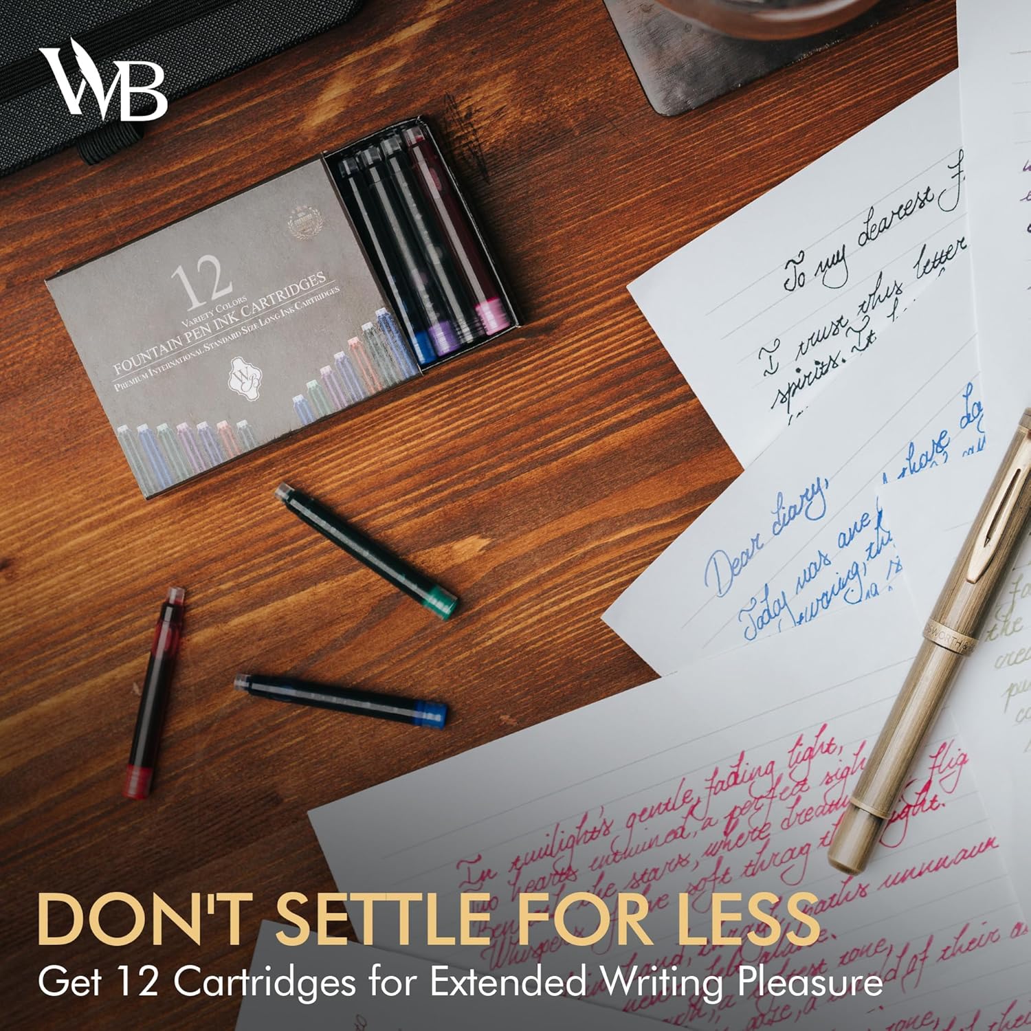 Wordsworth & Black 12 Pack Fountain Pen Ink Refills - Set of 12 Assorted Ink Cartridges - International Standard Size - Length APPR 2.3" - Base Diameter APPR 0.24" - Disposable and Generic