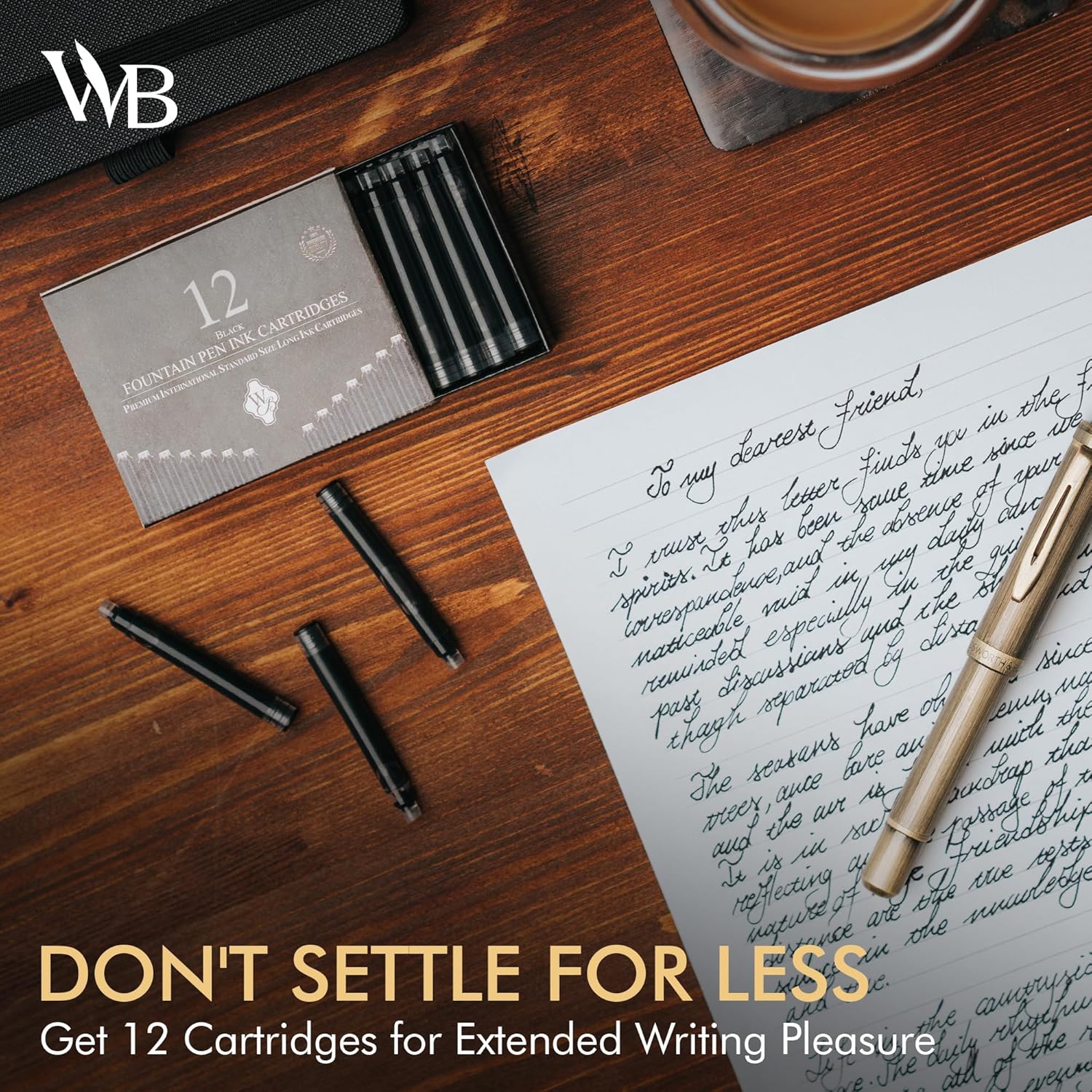Wordsworth & Black 12 Pack Fountain Pen Ink Refills - Set of 12 Black Ink Cartridges - International Standard Size - Length APPR 2.3" - Base Diameter APPR 0.24" - Disposable and Generic