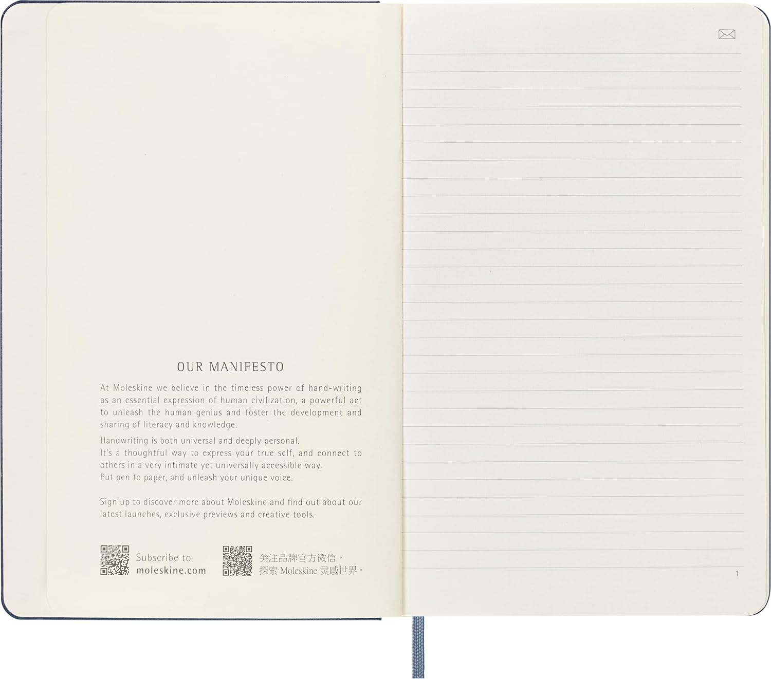 Moleskine Smart Notebook, Large, Ruled, Sapphire Blue, Hard Cover (5 x 8.25)