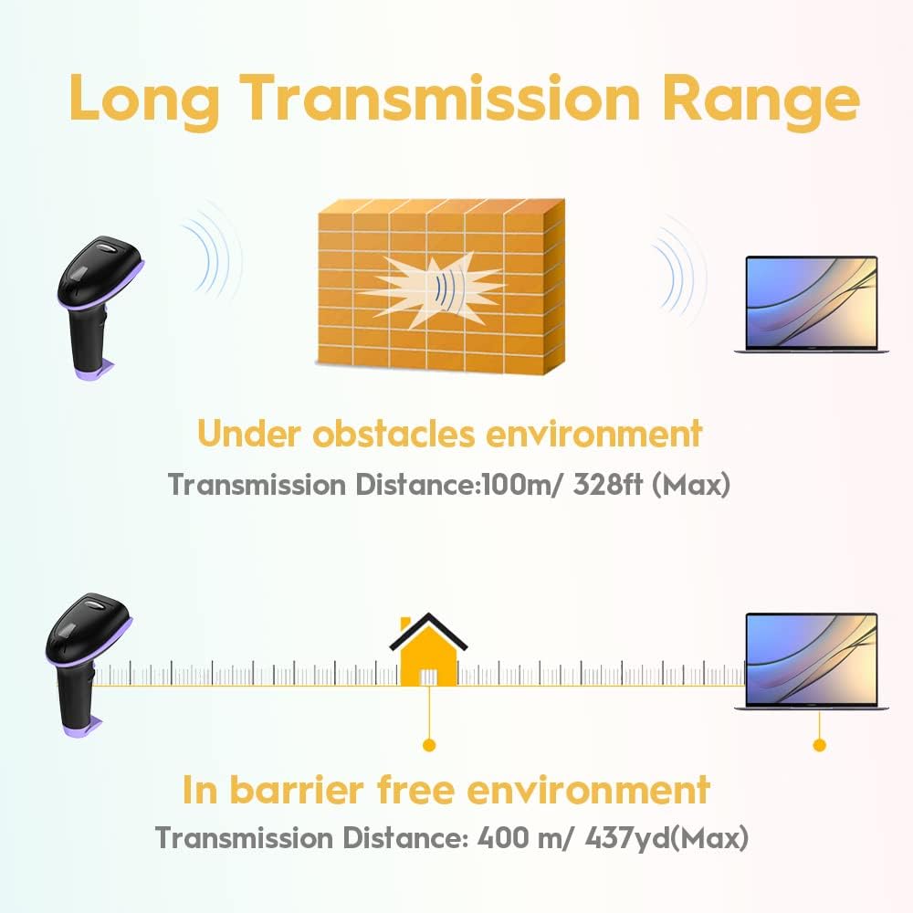 NADAMOO Wireless Barcode Scanner 328 Feet Transmission Distance USB Cordless 1D Laser Automatic Barcode Reader Handhold Bar Code Scanner with USB Receiver for Store, Supermarket, Warehouse - Violet