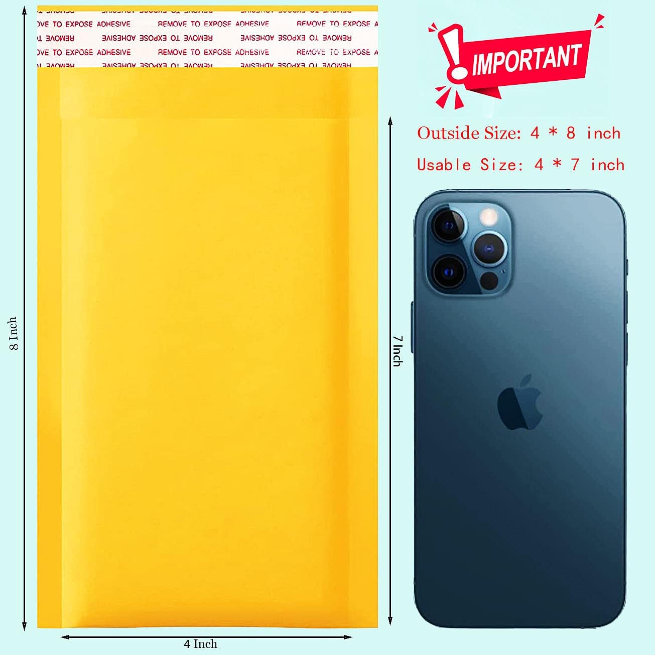 - Kraft Bubble Mailer Size :Outsize size SIZE: 4x8 inch, Usable size: 4x7 Includes 50 Kraft Bubble Envelopes.