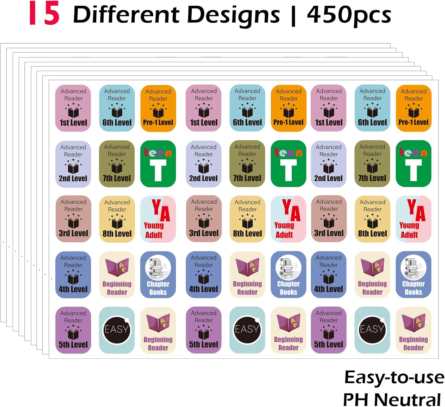 Genre Book Spine Labels for Library | Classroom Library Classification Stickers 450pcs | Advanced Reader Level