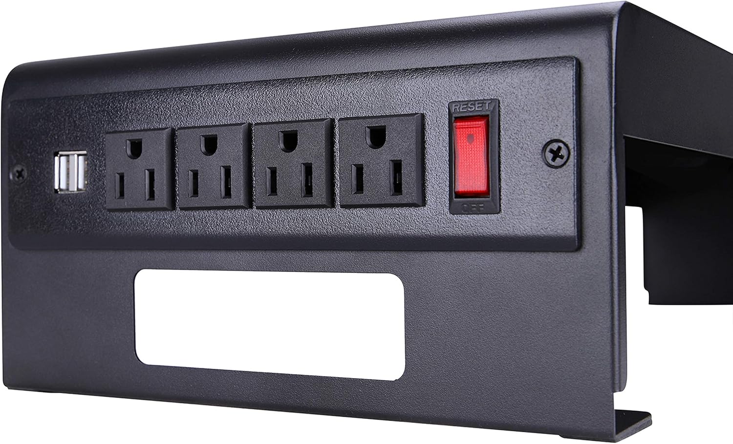 - INCLUDES DUAL MONITOR STAND: The DMS dual monitor stand which holds two standard size or one large monitor, includes 4 UL approved AC outlets and two USB 2.0 charging ports. The desk riser is licensed under U.S. Patent Nos. 9,113,703, 9,277,809, 9,554,644, 9,924,793 and other pending/issued U.S. and foreign patents