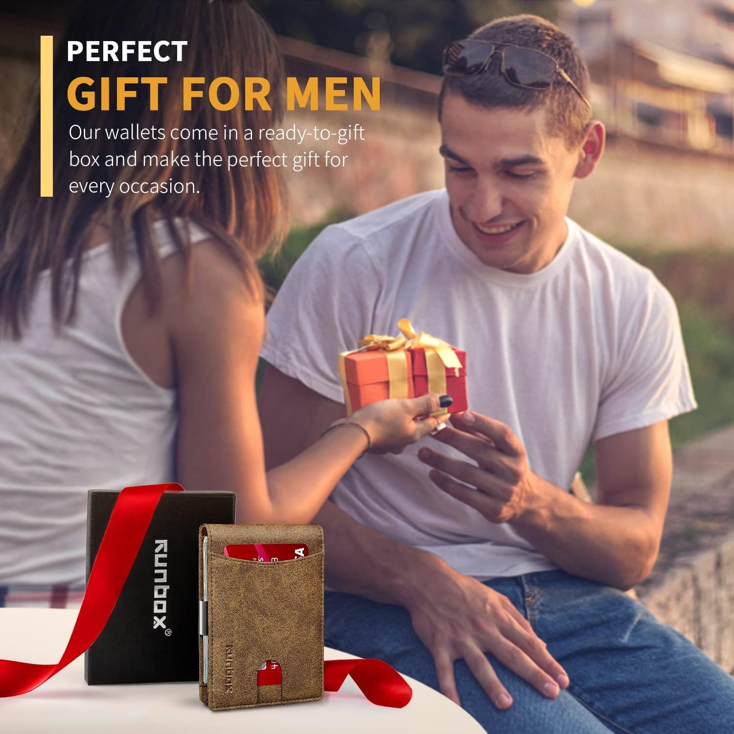 RUNBOX Money Clip Slim Wallets for Men RFID Blocking 11 Card Holder Minimalist Small Leather Bifold Men's Front Pocket Wallet Gift Box