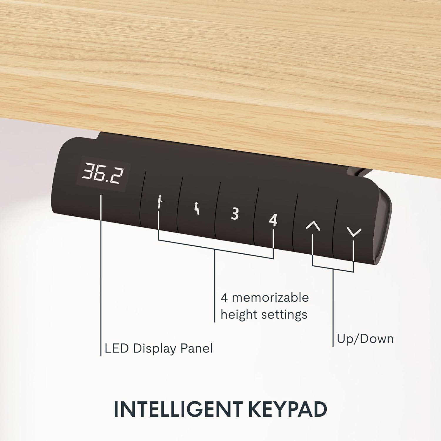 - 【PROGRAMMABLE CONTROLLER】 Easily set your preferred desk heights using the convenient control panel. Program up to four different heights into the memory buttons, allowing you to switch between sitting and standing positions effortlessly.