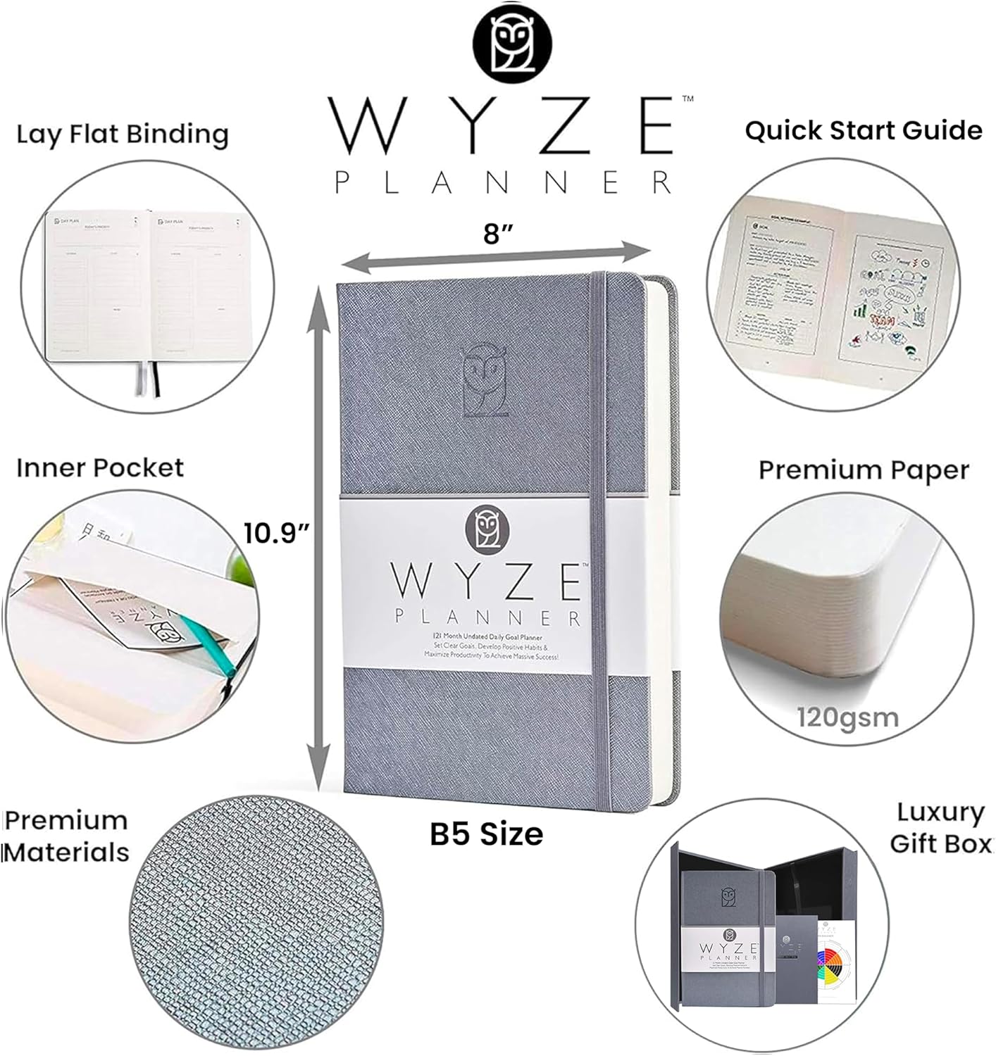 Undated Daily Planner – 1-Year B5 Productivity Organizer with Two-Page Weekly Spread, Goal Setting, Habit Tracker, Weekly & Monthly Pages – Hardcover Time Management Notebook (Gray)