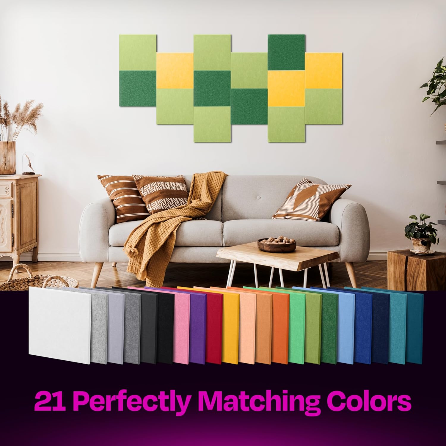 - ăHIGH DENSITY ACOUSTIC PANELSă: Improve sound quality and reduce echoes & reverb at your home, office, podcast studio, conference room and more. Give your space what it's been asking for, with our beautiful sound absorbing panels and keep unwanted noises down to a minimum.