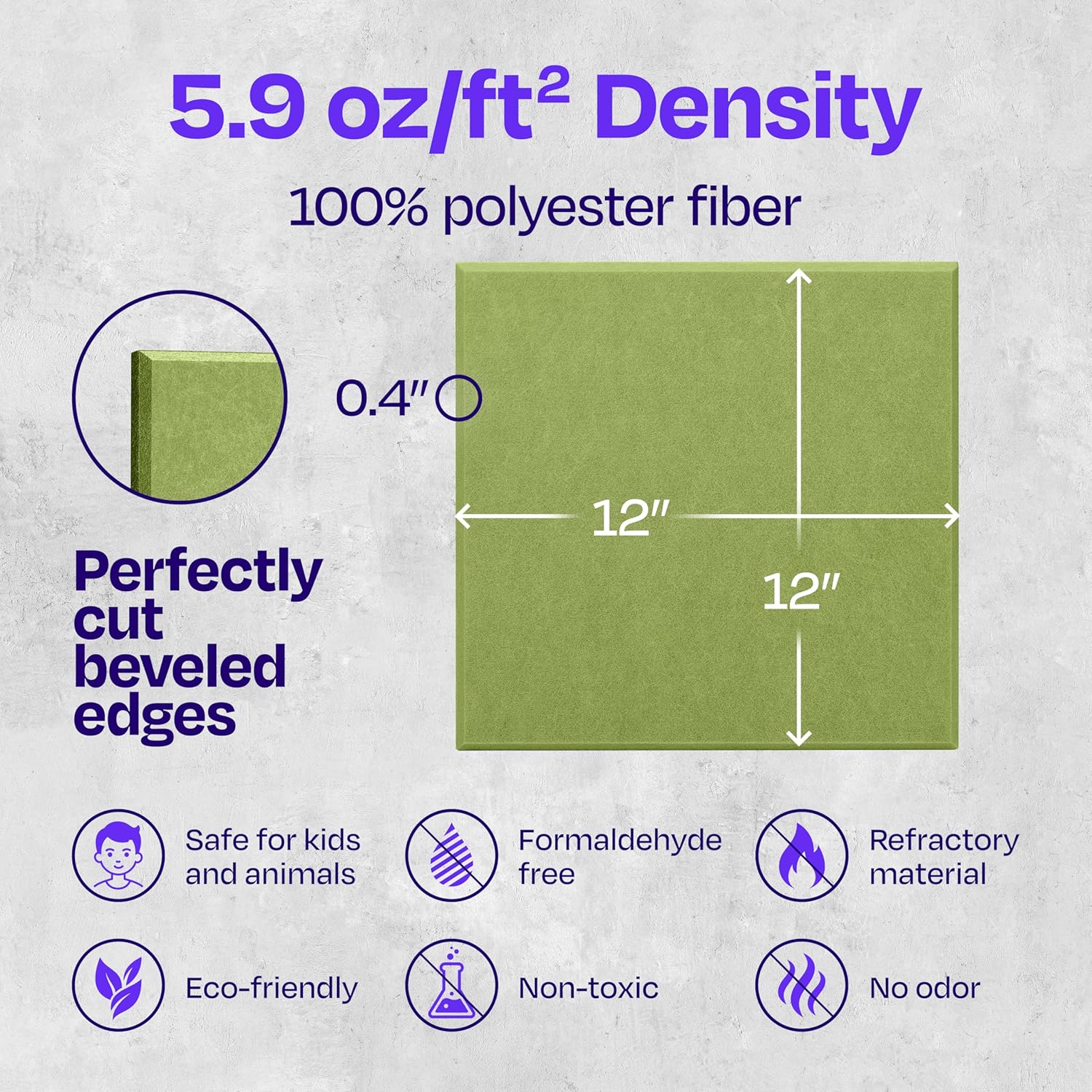 - ăENVIRONMENT-FRIENDLY & SAFE TO USEă: Each sound panel contains the equivalent of 4 recycled water bottles, pulled straight out of the oceans. In addition, they are odorless, formaldehyde-free, flame retardant, do not emit any gasses and safe to breathe and touch.