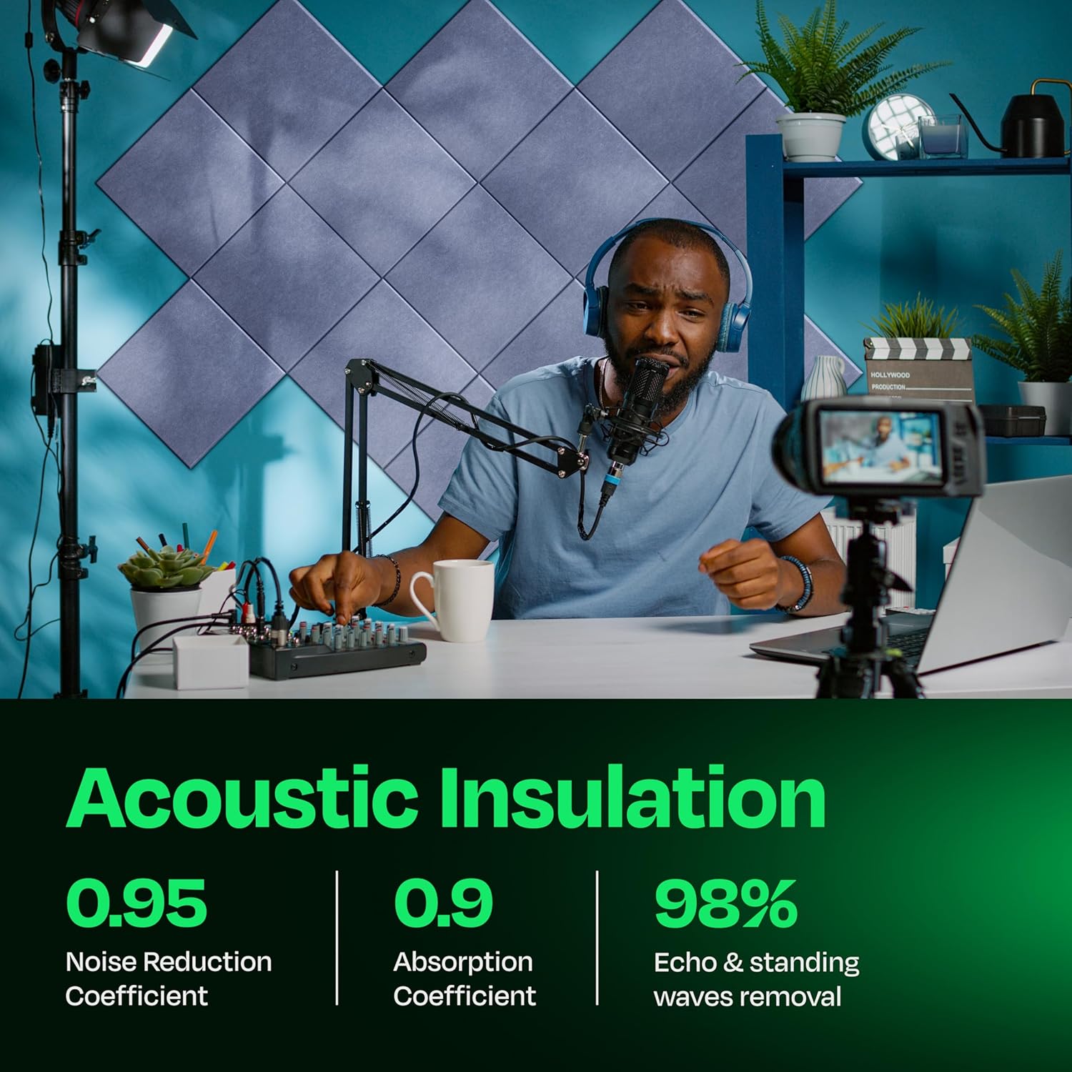 - ăHIGH DENSITY ACOUSTIC PANELSă: Improve sound quality and reduce echoes & reverb at your home, office, podcast studio, conference room and more. Give your space what it's been asking for, with our beautiful sound absorbing panels and keep unwanted noises down to a minimum.