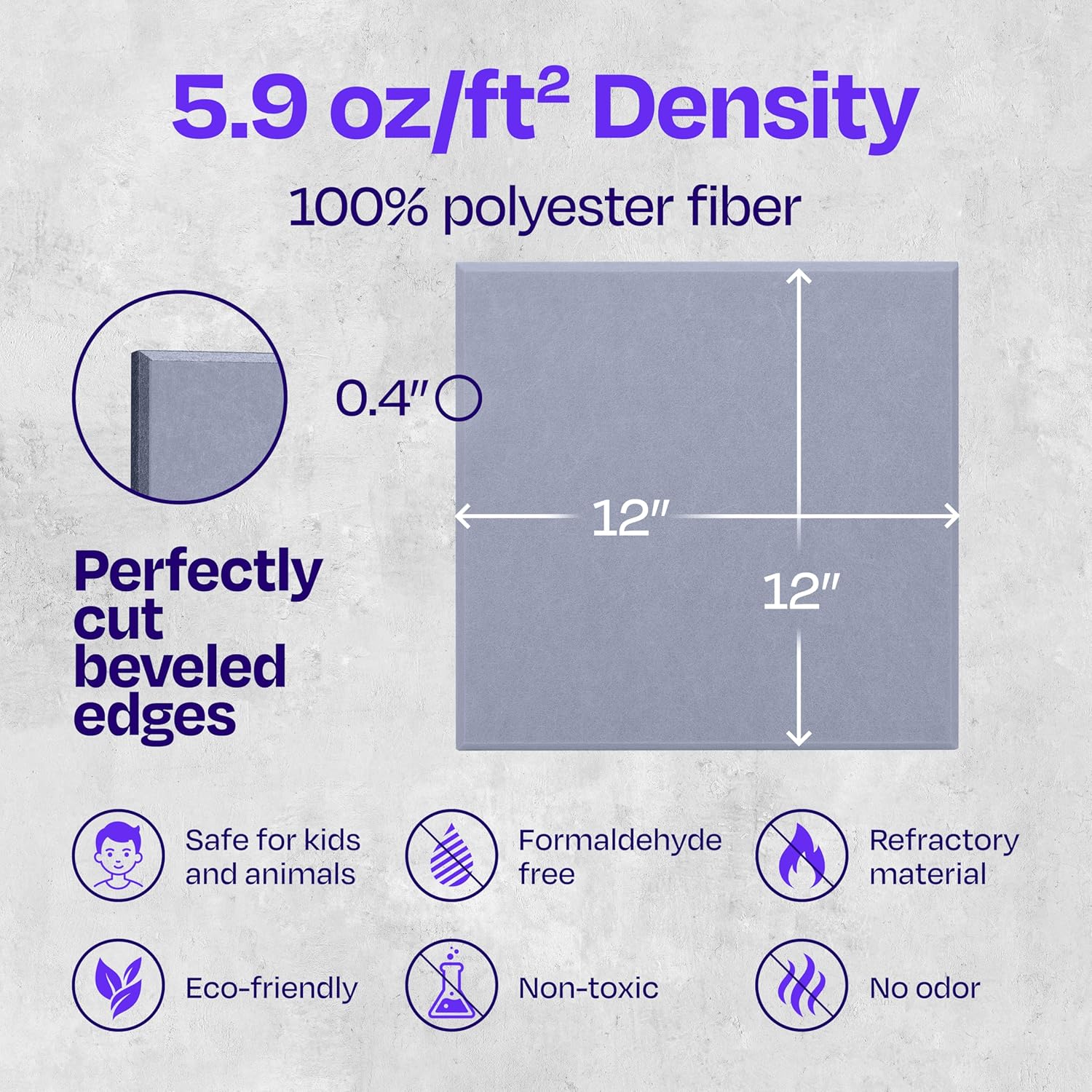Acoustic Panels 12-Pack - 12"X12"X0.4" Sound Panels - High Density Sound Dampening - Dusky Gray Square