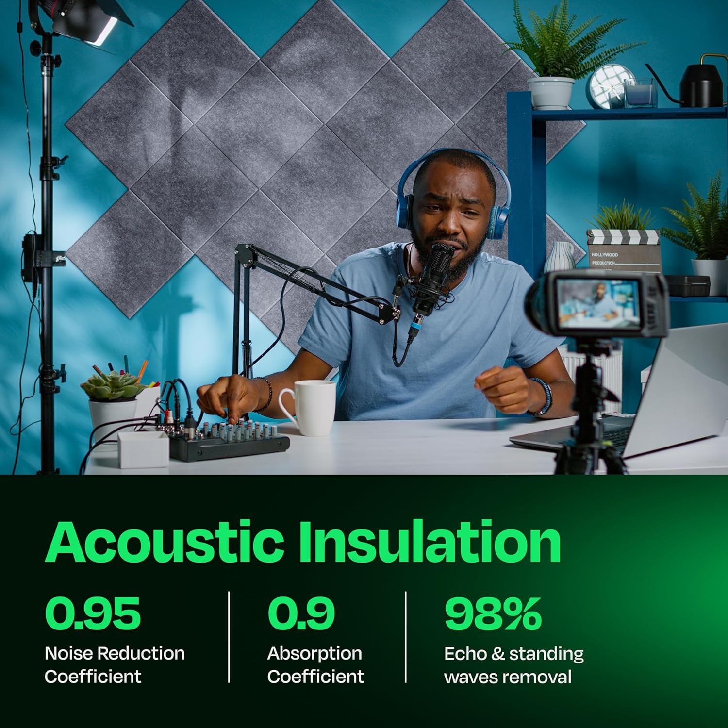 - ăHIGH DENSITY ACOUSTIC PANELSă: Improve sound quality and reduce echoes & reverb at your home, office, podcast studio, conference room and more. Give your space what it's been asking for, with our beautiful sound absorbing panels and keep unwanted noises down to a minimum.