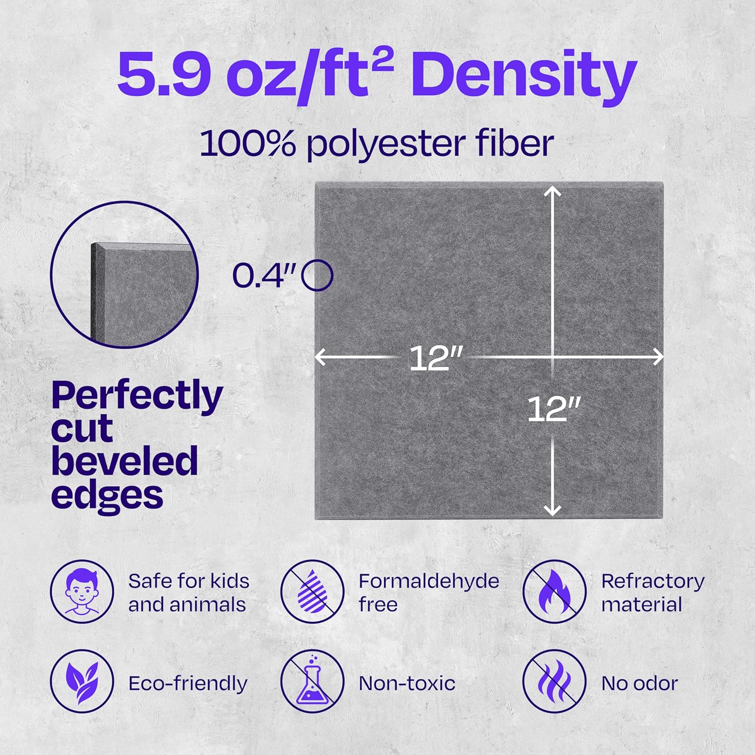 - ăENVIRONMENT-FRIENDLY & SAFE TO USEă: Each sound panel contains the equivalent of 4 recycled water bottles, pulled straight out of the oceans. In addition, they are odorless, formaldehyde-free, flame retardant, do not emit any gasses and safe to breathe and touch.