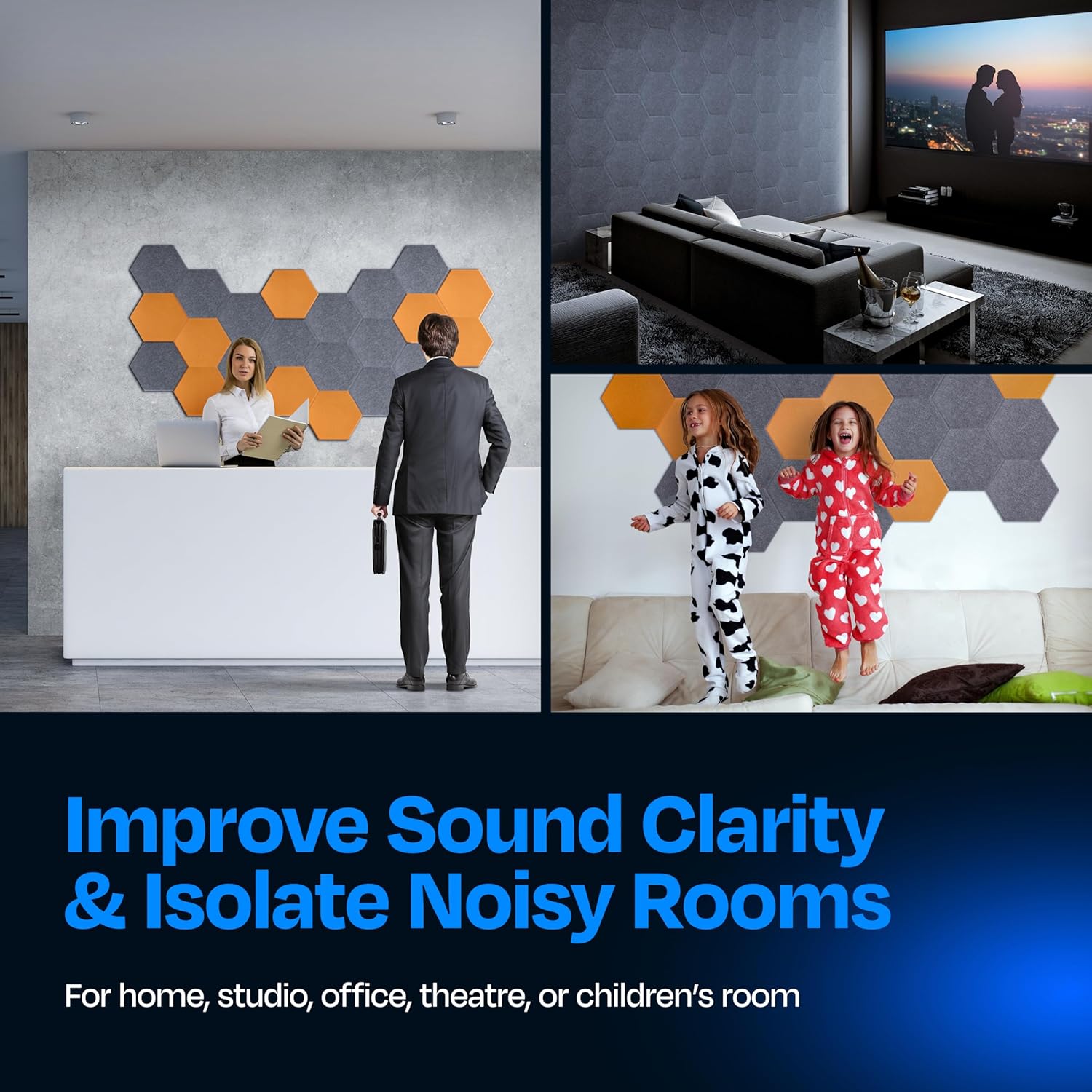 - ăHIGH DENSITY ACOUSTIC PANELSă: Improve sound quality and reduce echoes & reverb at your home, office, podcast studio, conference room and more. Give your space what it's been asking for, with our beautiful sound absorbing panels and keep unwanted noises down to a minimum.