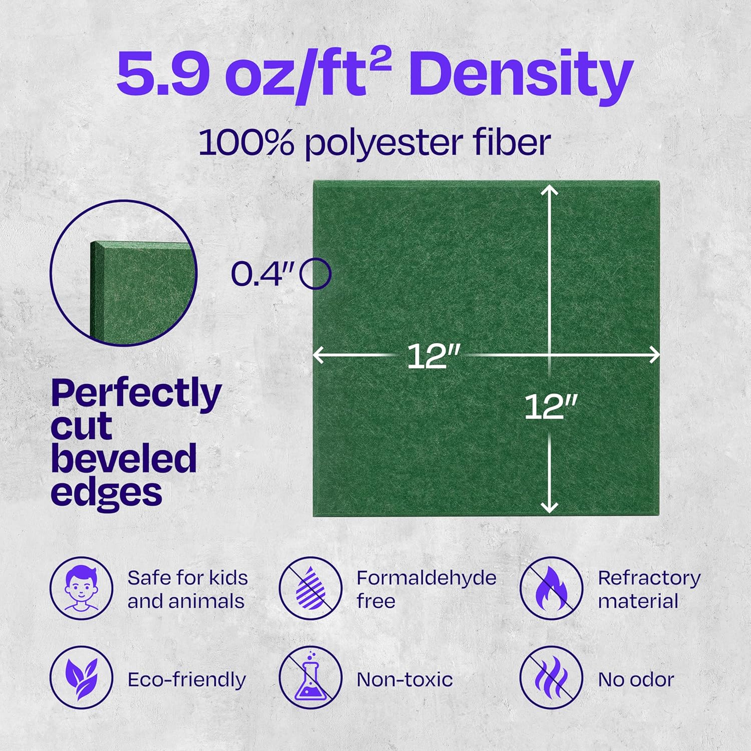 Acoustic Panels 12-Pack Soundproof Wall Panels 12"X12"X0.4" Sound Panels High Density Sound Dampening Panels - [Dark Green Square]
