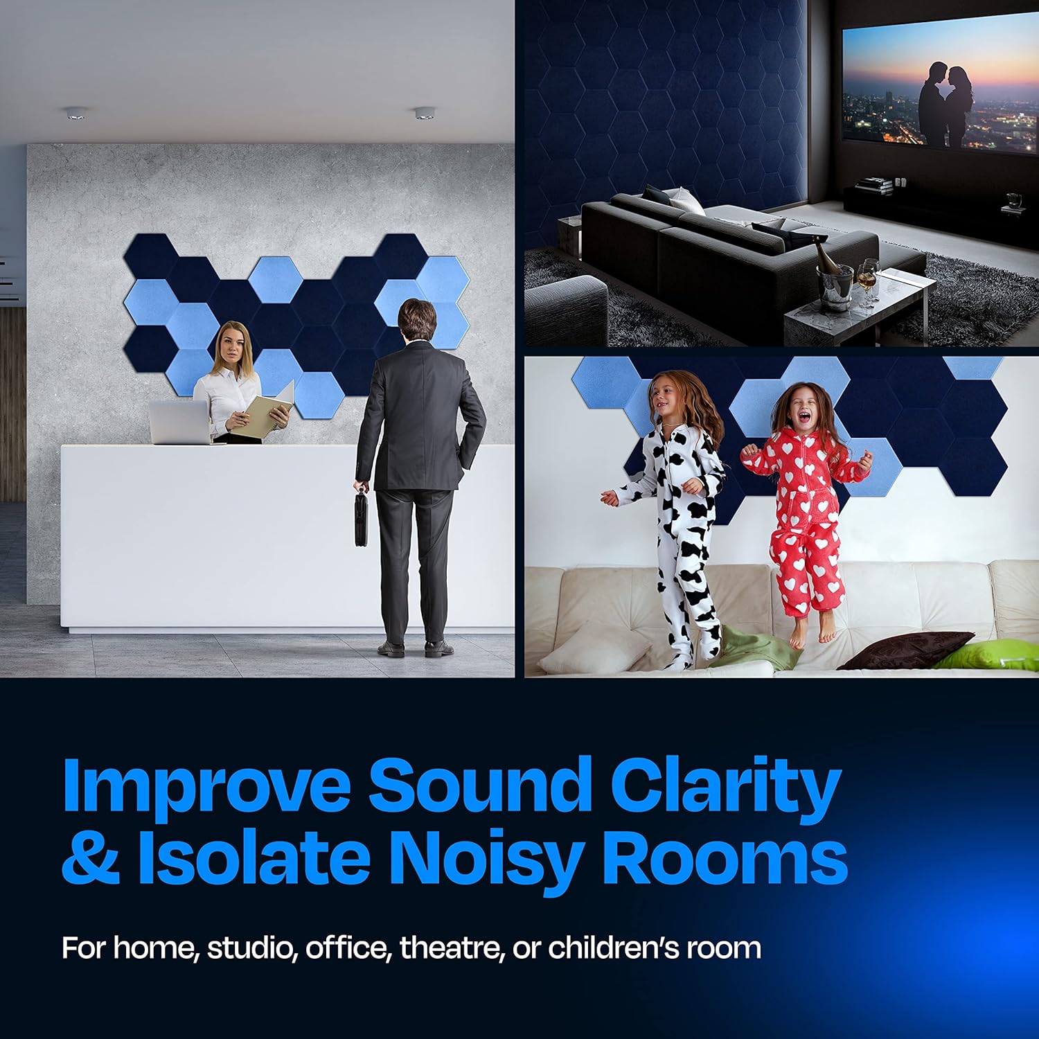 Acoustic Panels 12-Pack Soundproof Wall 12"X10.4"X0.4" - High Density Sound Dampening [Denim Blue Hexagon]