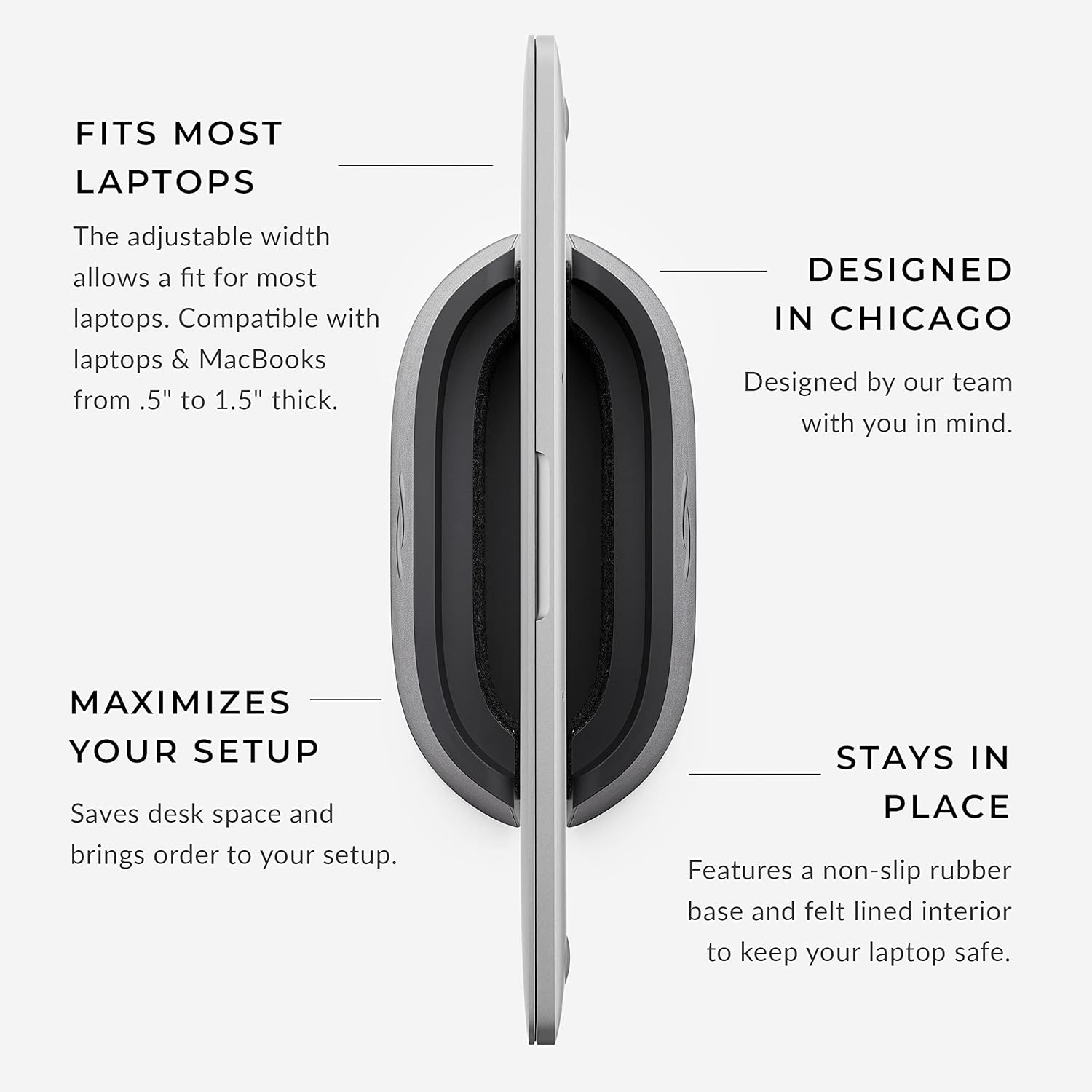 - The adjustable width is highly compatible and fits most laptops and MacBooks from 0.5 to 1.5 inches thick. Use the four screws on the bottom of the stand to adjust for the perfect fit. The vertical laptop stand is weighted for stability and support.