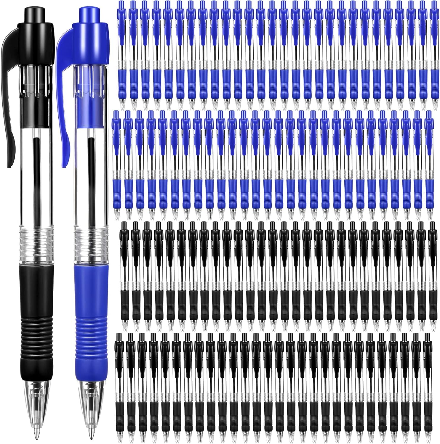 - 200 Large Pack: you will receive 100 pieces black retractable ballpoint pen and 100 pieces blue retractable ballpoint pen, sufficient quantities can meet your daily use and replacement needs for a long time, you can also give the click pens as gifts to your staff, students, children, family or friends